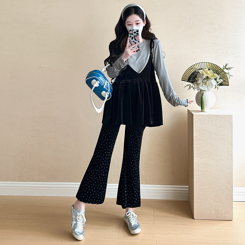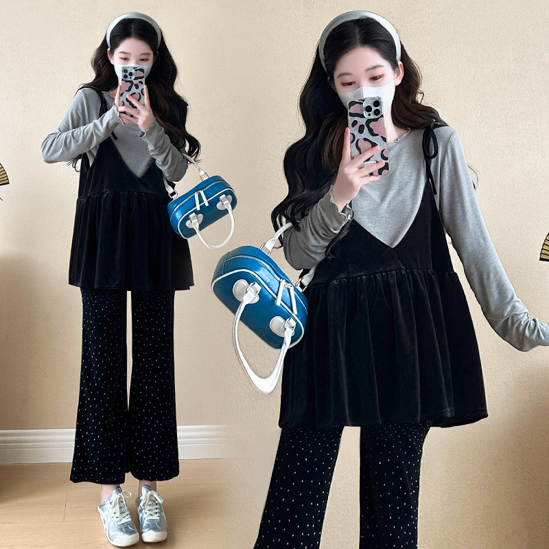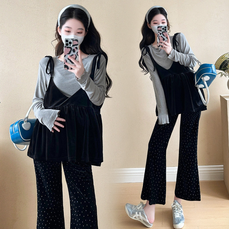 孕妇装套装2025新款秋冬甜美时尚洋气上衣喇叭裤两件套小个子穿搭