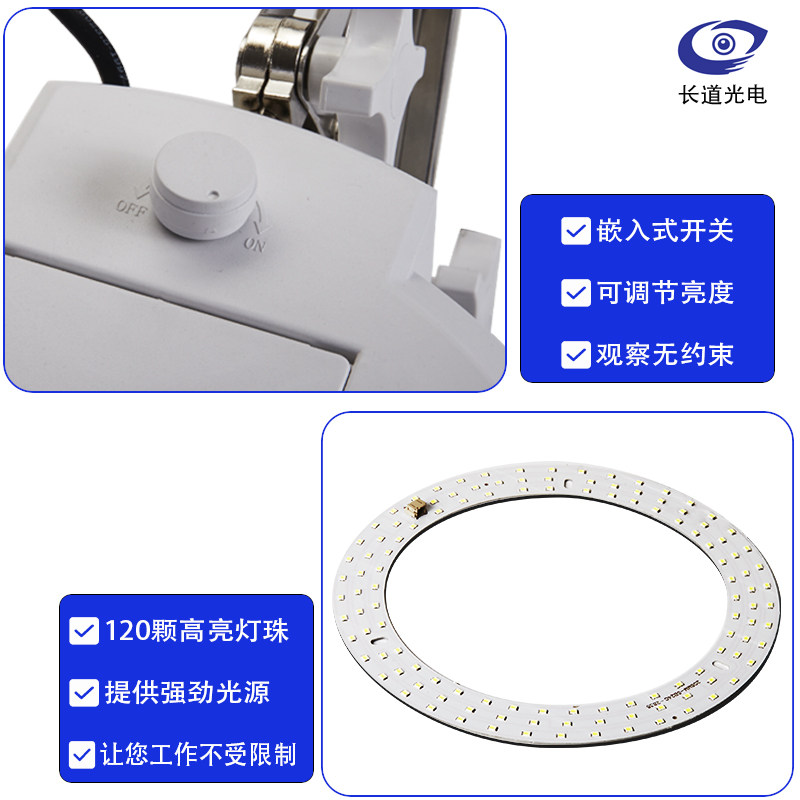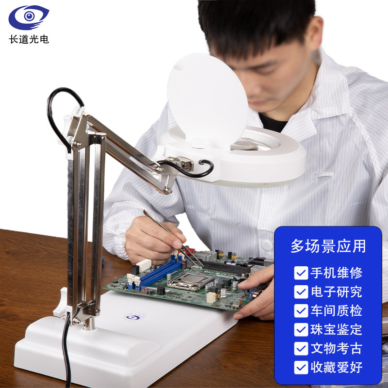 长道台式放大镜高倍高清带灯LED老人阅读HK9玻璃30倍40倍珠宝电脑手机电路维修鉴定台灯子母镜片台式放大镜