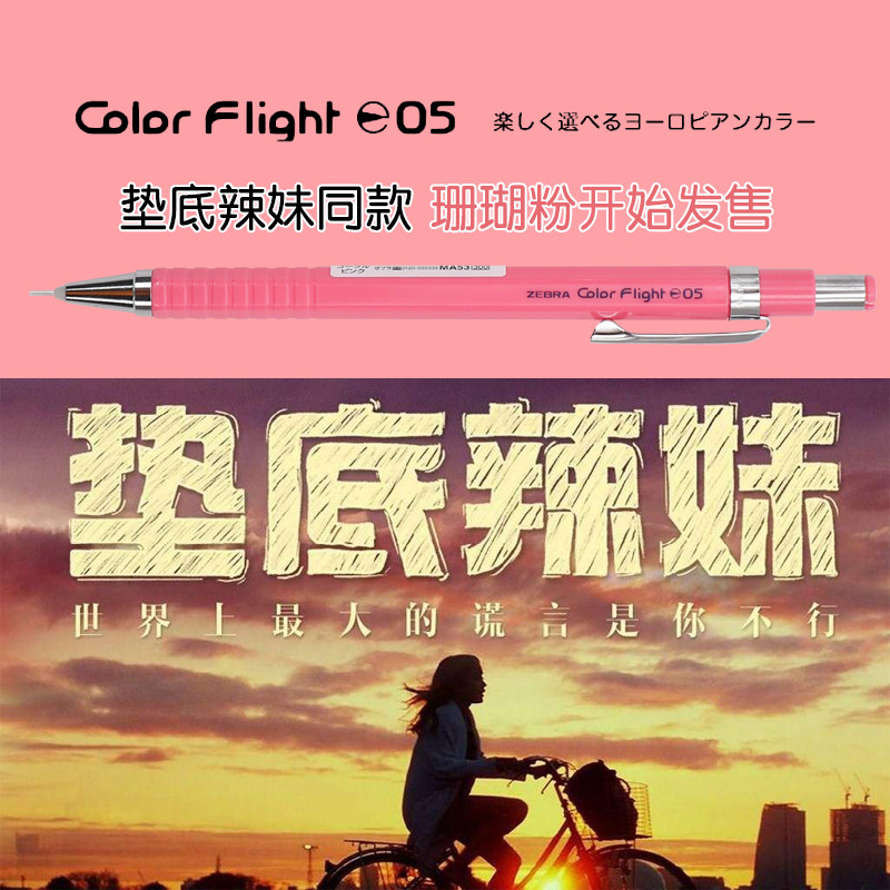日本斑马ZEBRA绘图自动铅笔flight彩色六角杆活动铅笔MA53小学生用写不断芯0.5珊瑚粉写不断铅笔垫底辣妹文具
