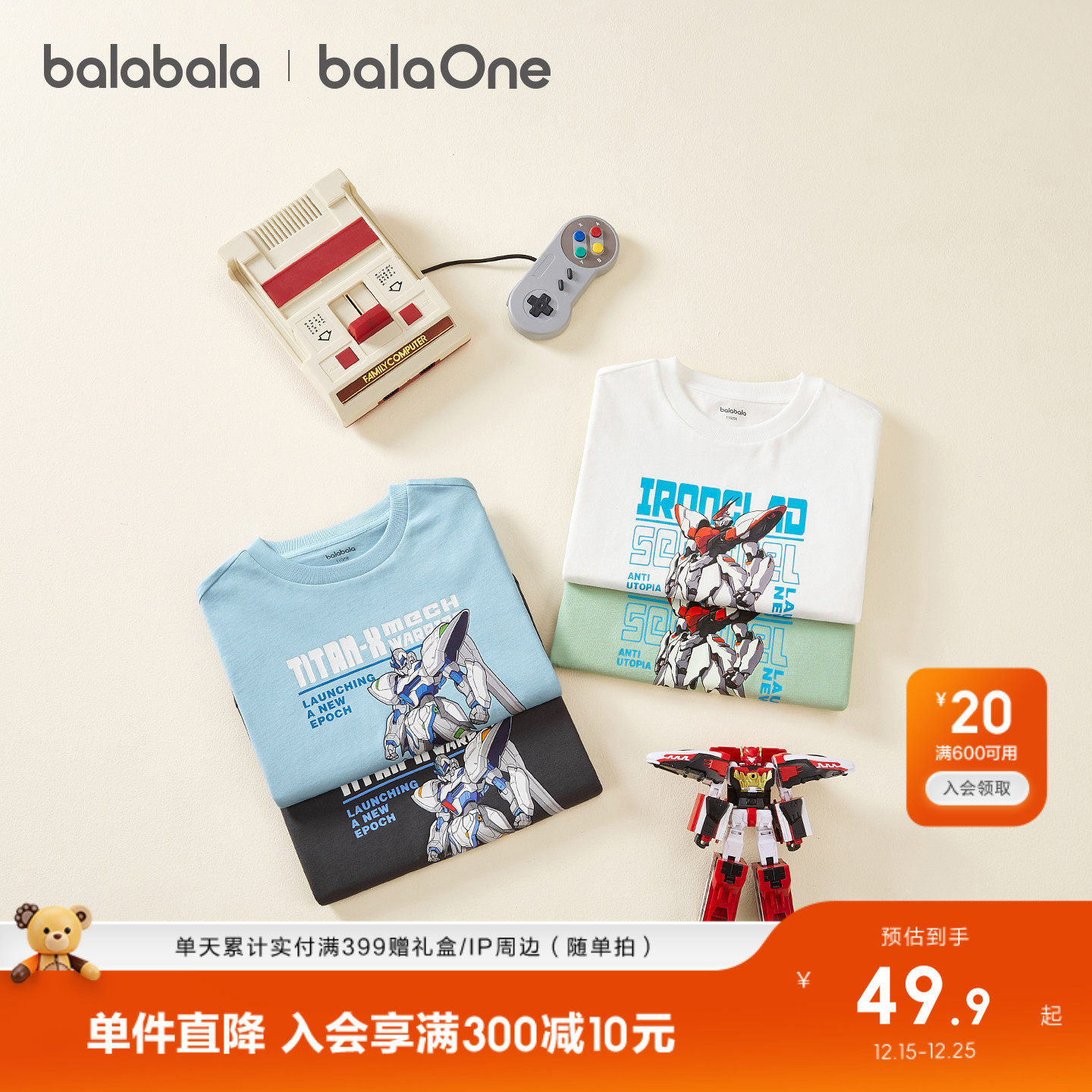 迷你巴拉巴拉婴儿宝宝男女童长袖T恤2025冬新款联名半高领打底衫