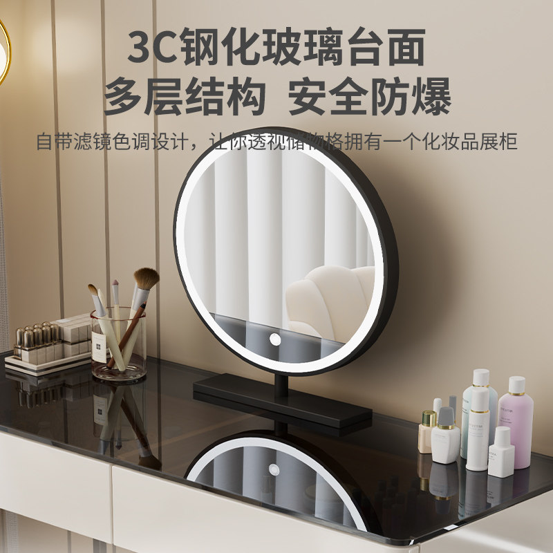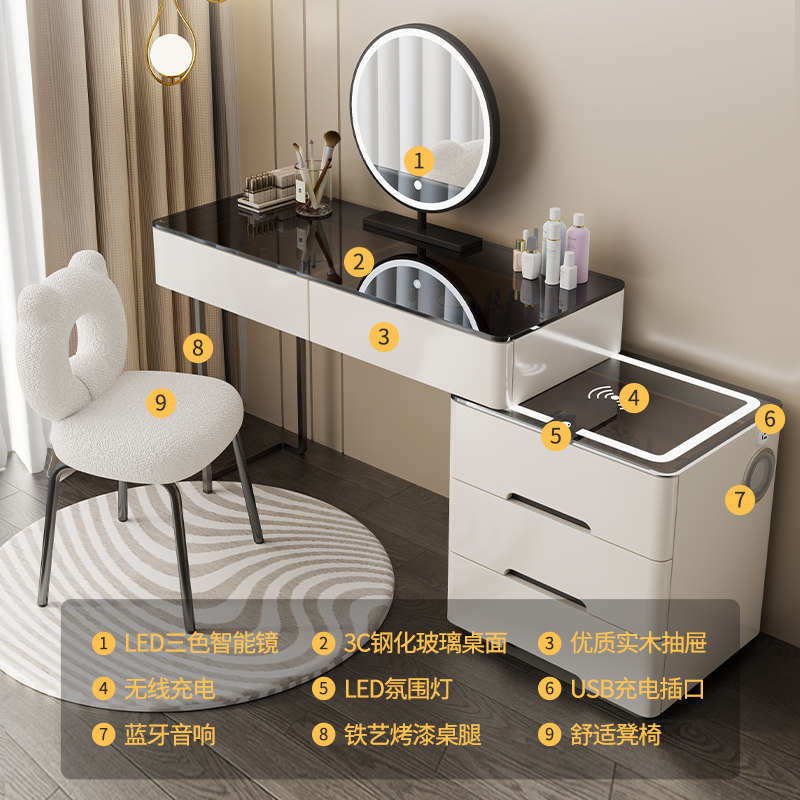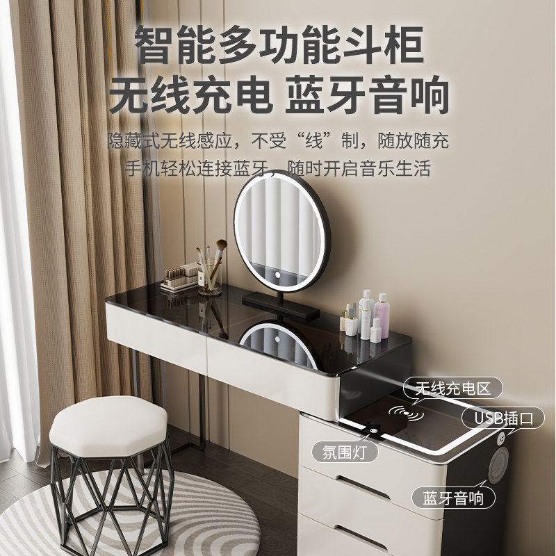 智能实木梳妆台无线充电蓝牙音响化妆台现代简约多功能一体化妆桌