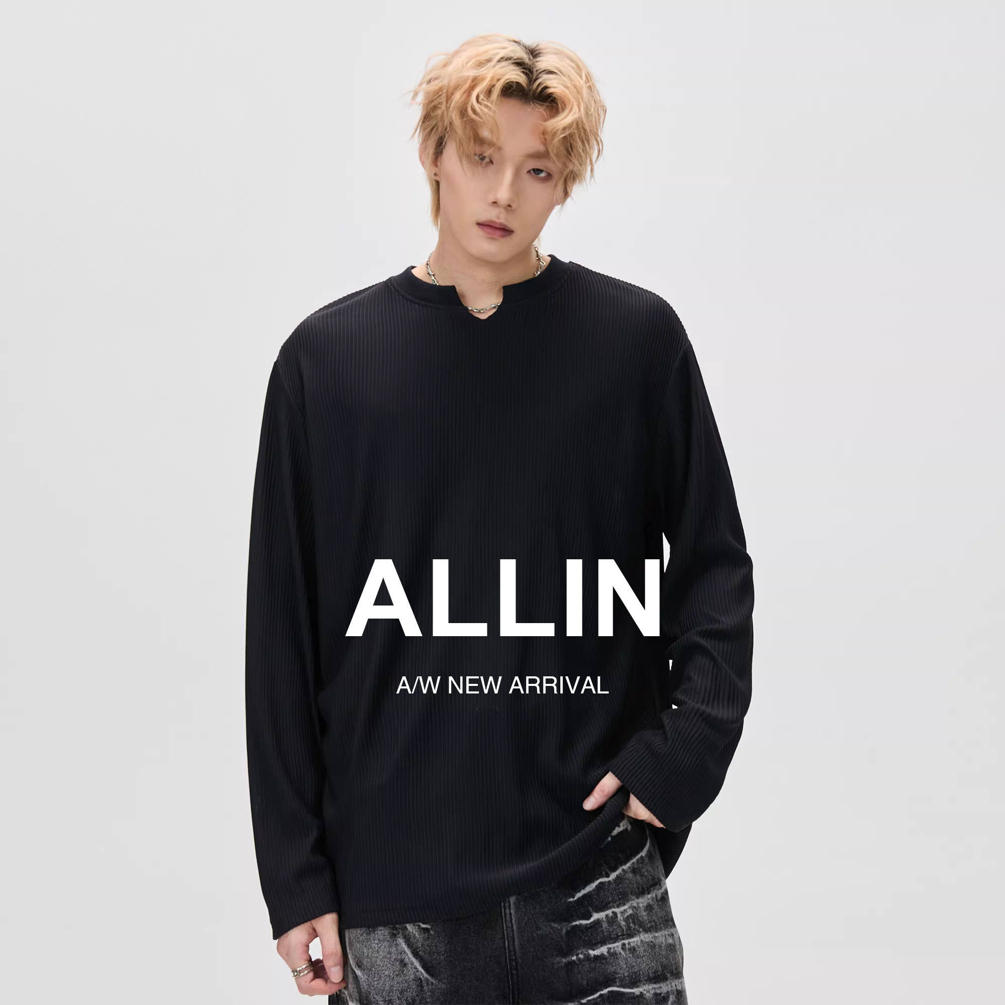 ALLIN 黑色V领长袖t恤男2025秋冬新款美式cleanfit宽松内搭打底衫