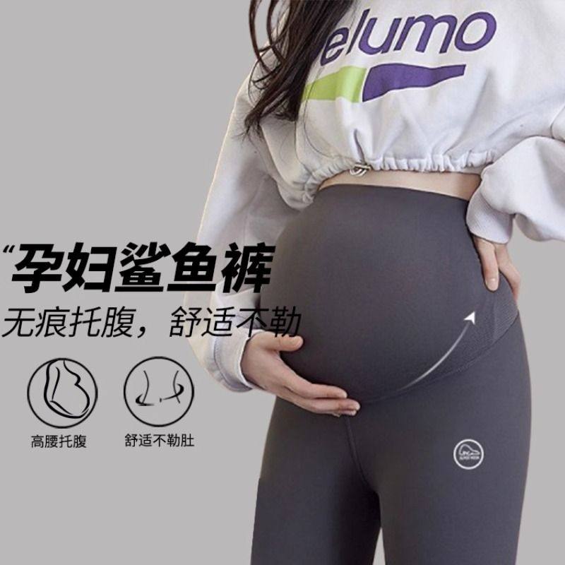 嫚熙裸感孕妇鲨鱼裤秋冬外穿加绒打底裤撑托提臀不勒肚瑜伽裤新款