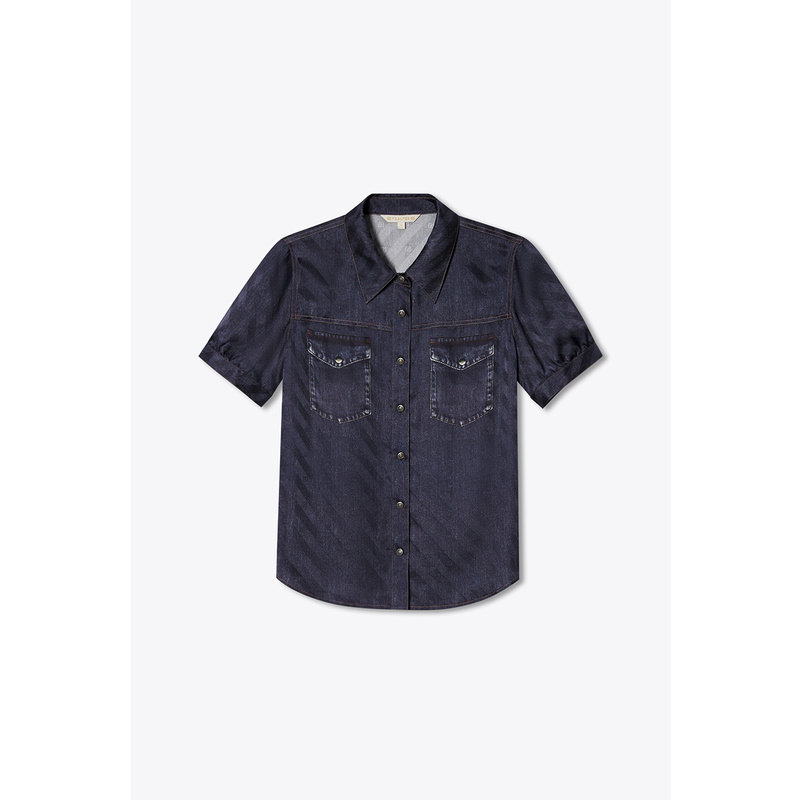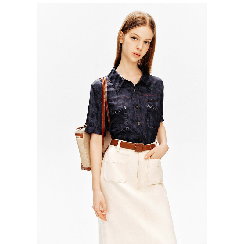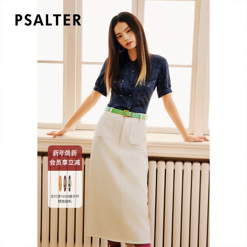 【真丝】PSALTER诗篇100%桑蚕丝暗纹提花条纹复古牛仔衬衫夏