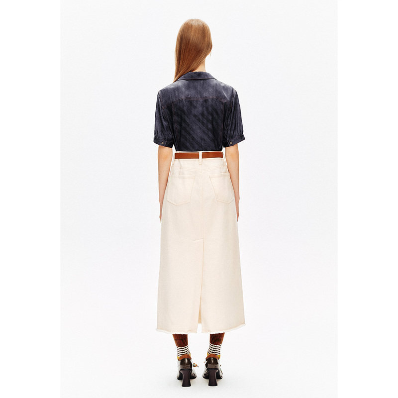 MAMC灯笼袖暗纹白色衬衫女2024新款修身独特小众设计感一字肩上衣