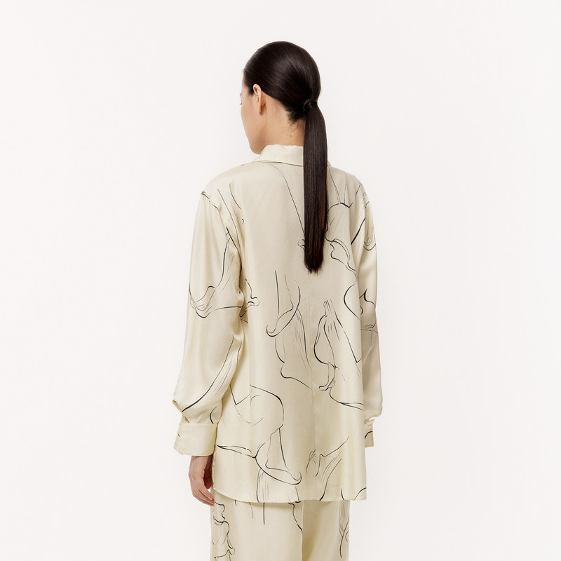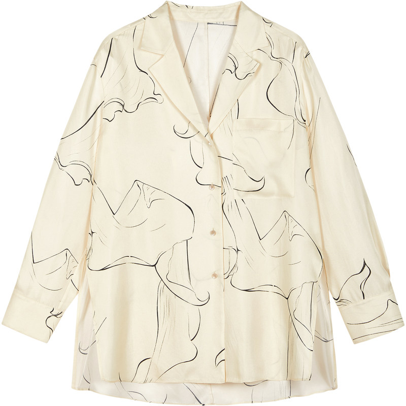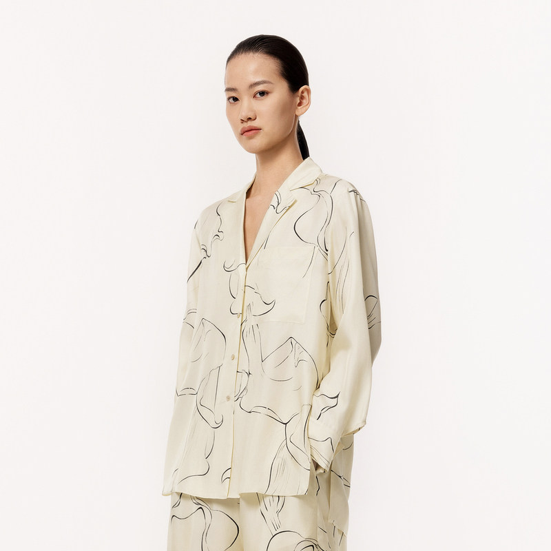 【周迅同款】LESS春线描马蹄莲桑蚕真丝古巴领衬衫套装2O2213050