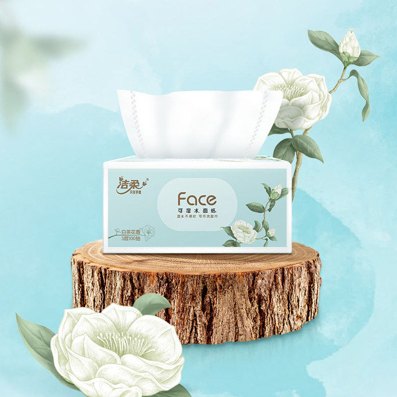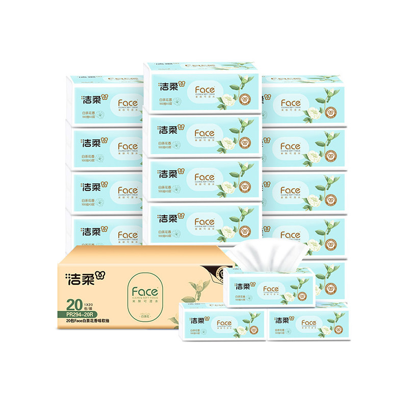 洁柔抽纸白茶花3层100抽20包箱装家用实惠餐巾纸卫生纸面巾纸抽纸