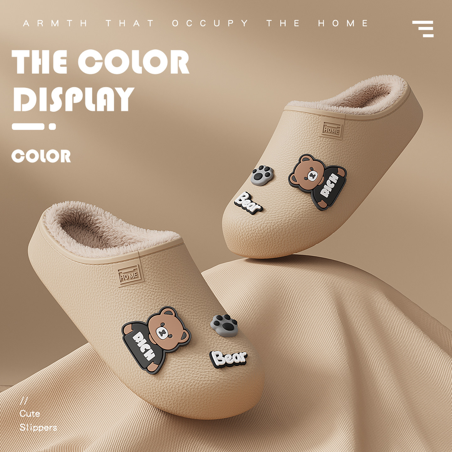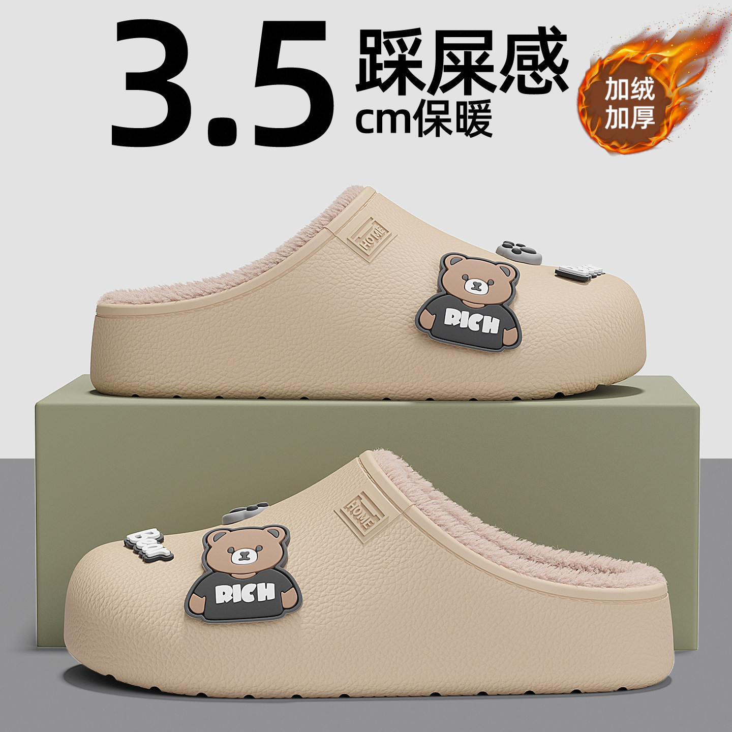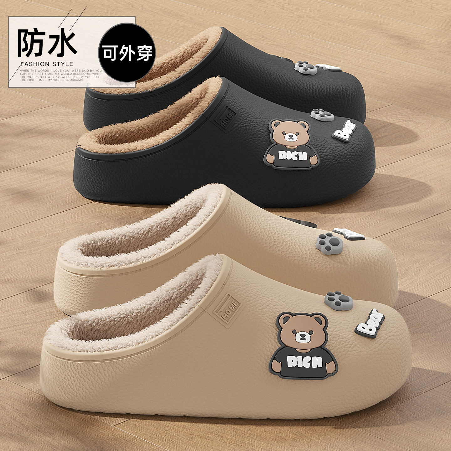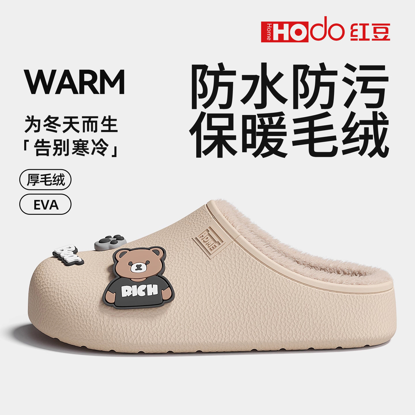 红豆摩卡棉拖鞋女款冬季2025新款居家防水防滑保暖加绒加厚棉鞋男