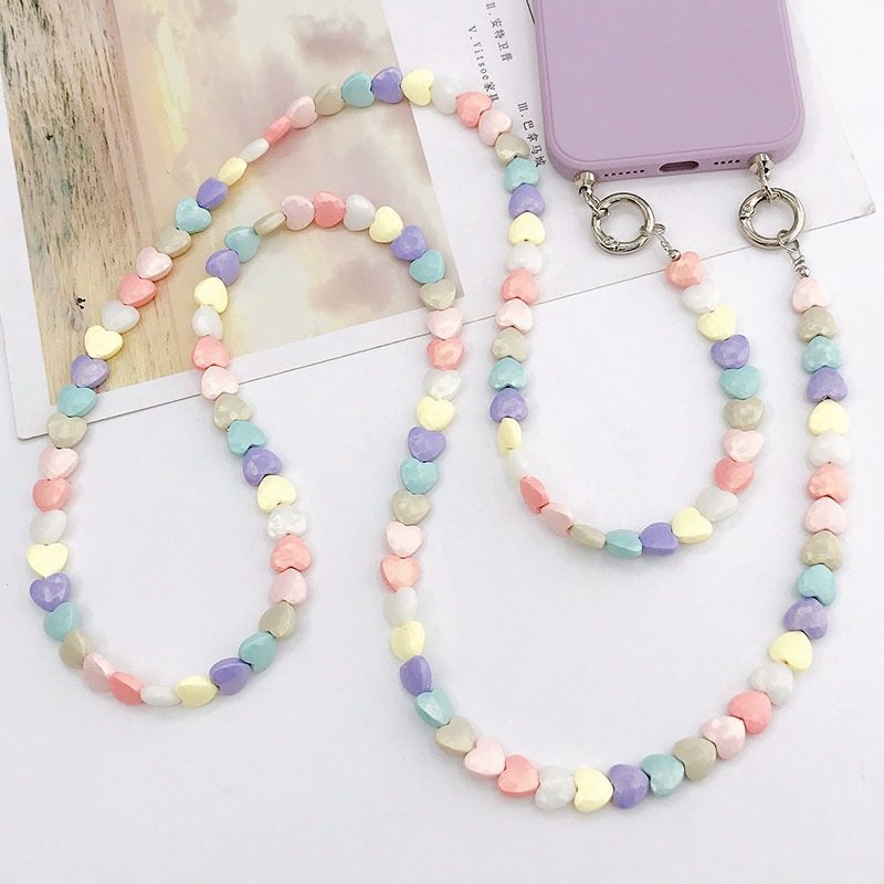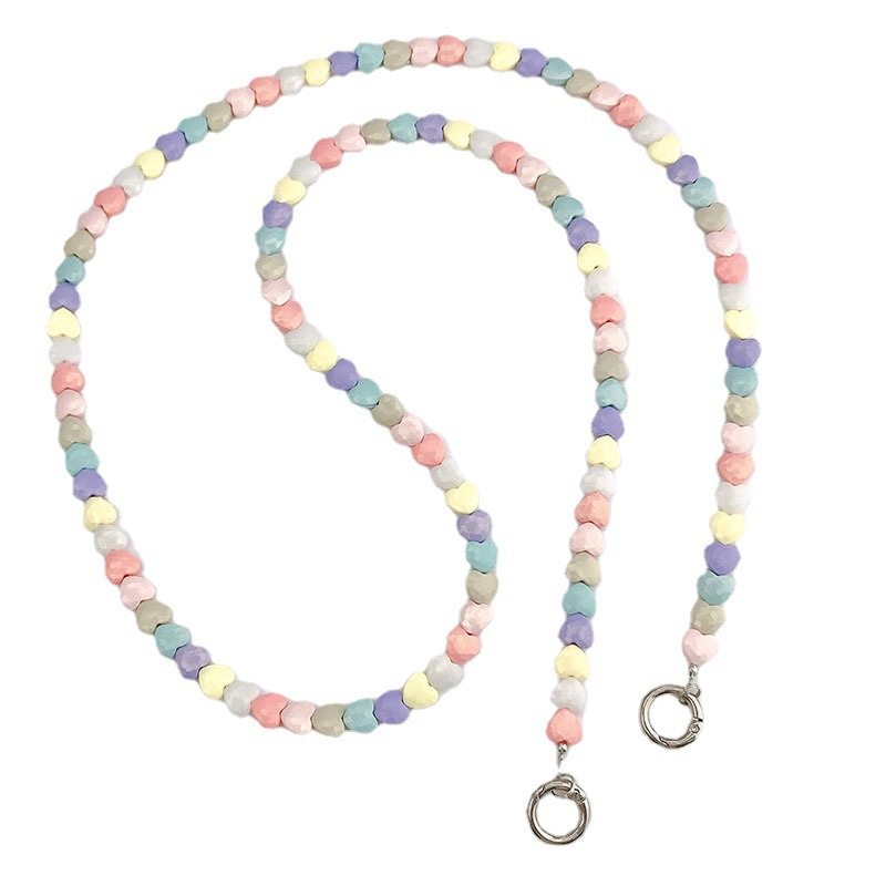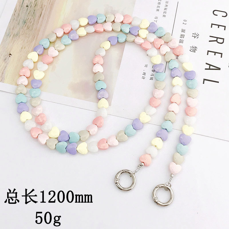 新款炫彩爱心斜跨链包包肩带挂绳挂件防摔手机链串珠手工挂饰