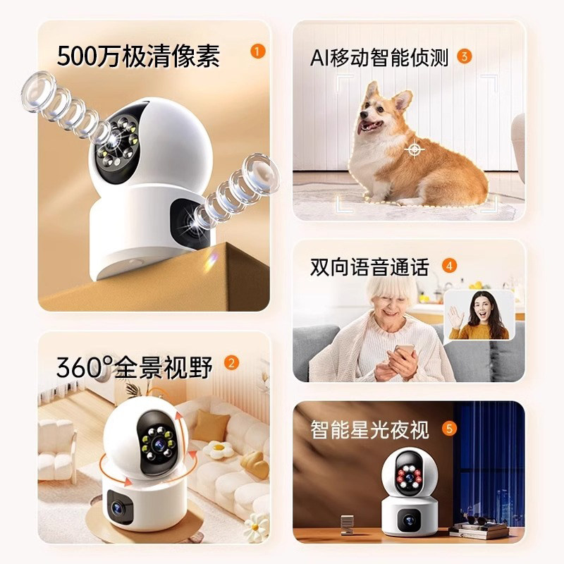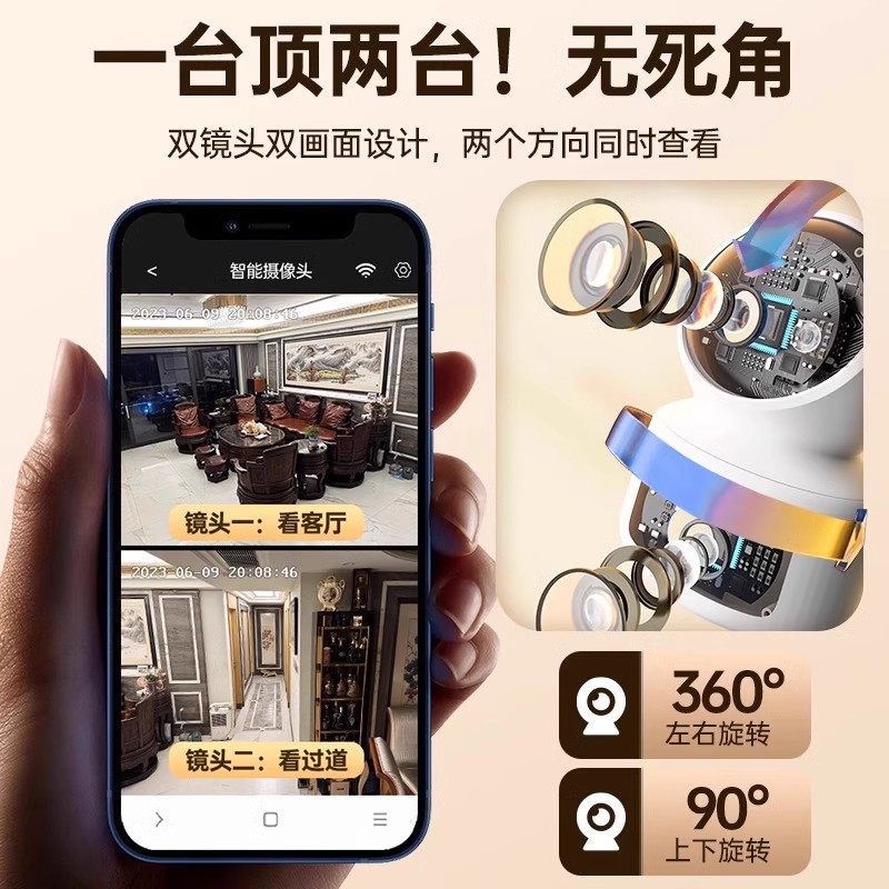 远程家用监控摄像头双画面室内360度无死角高清室内小孩宠物手机