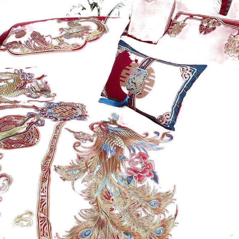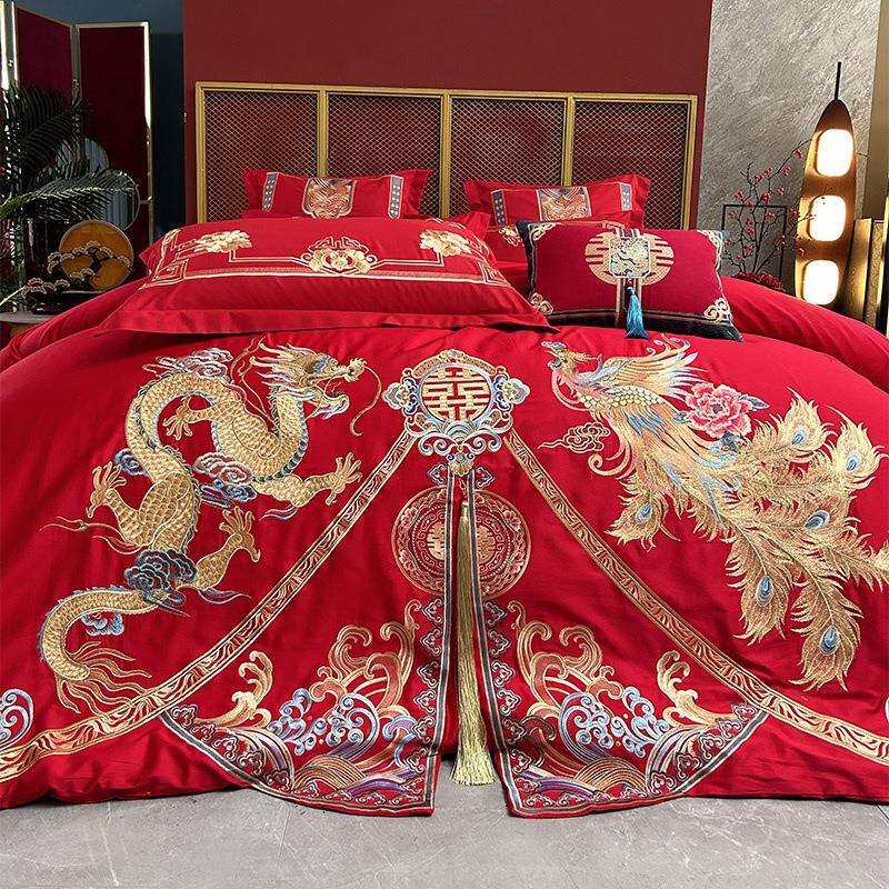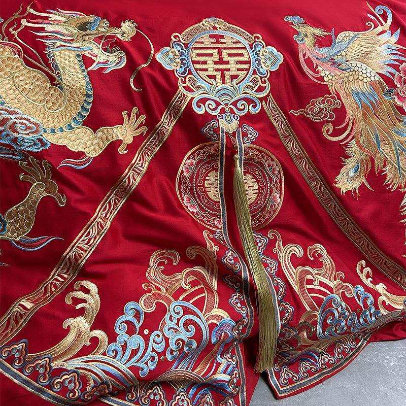 高档婚庆四件套大红色全棉刺绣结婚床品新婚喜被套件纯棉绣花床品