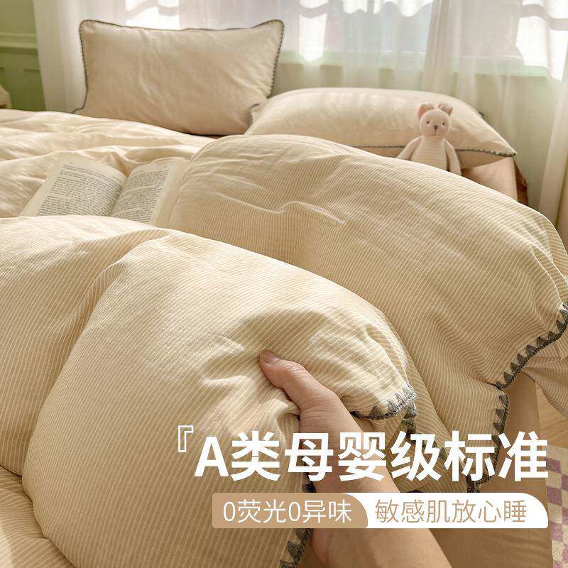2025新款A类双层纱床上四件套纯棉全棉被套床单床笠床品套件轻奢