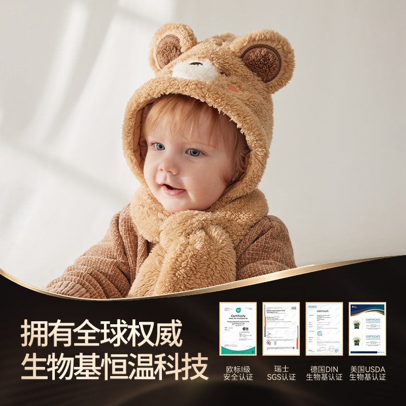 尼多熊婴儿帽子秋围脖一体宝宝毛绒帽防风护耳帽冬季保暖婴幼儿帽