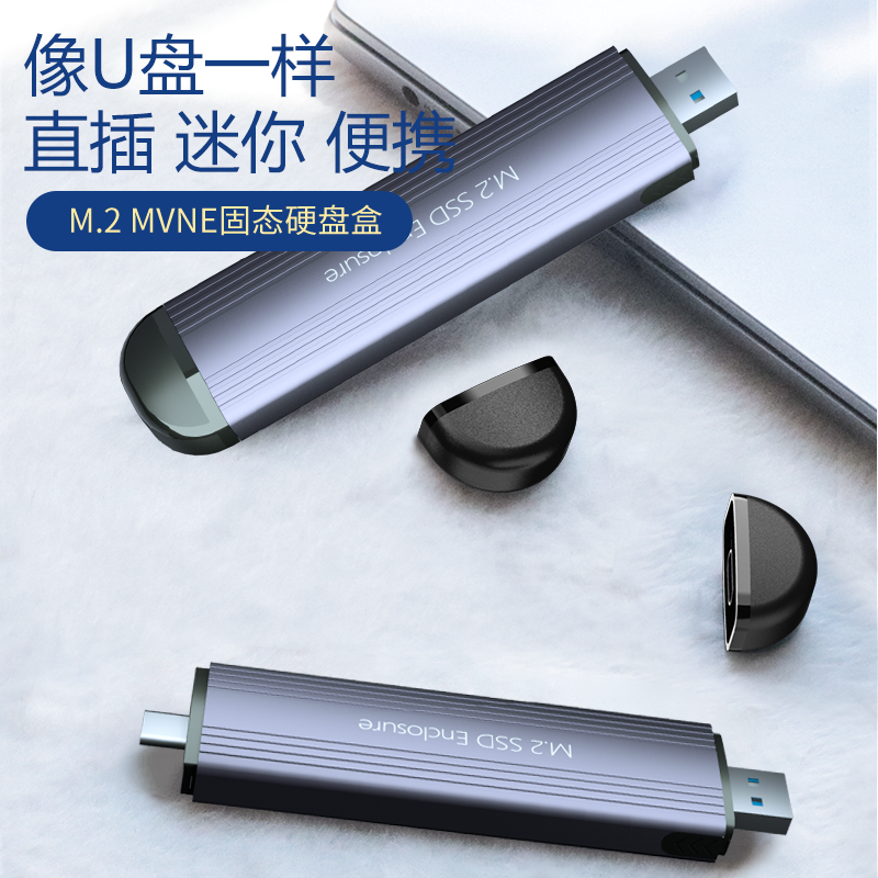 直插免连接线m.2固态硬盘盒Type-C双协议M2 NVME/NGFF/SATA收纳盒