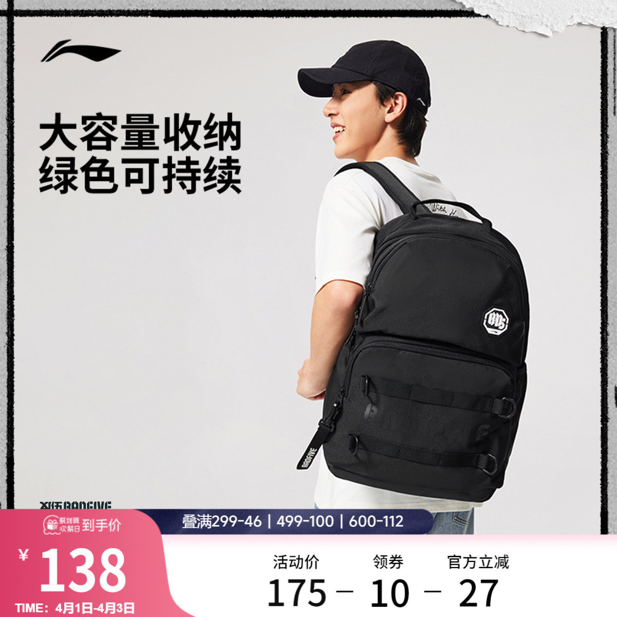 李宁反伍BADFIVE双肩包男包女包2026新款背包书包学生环保运动包