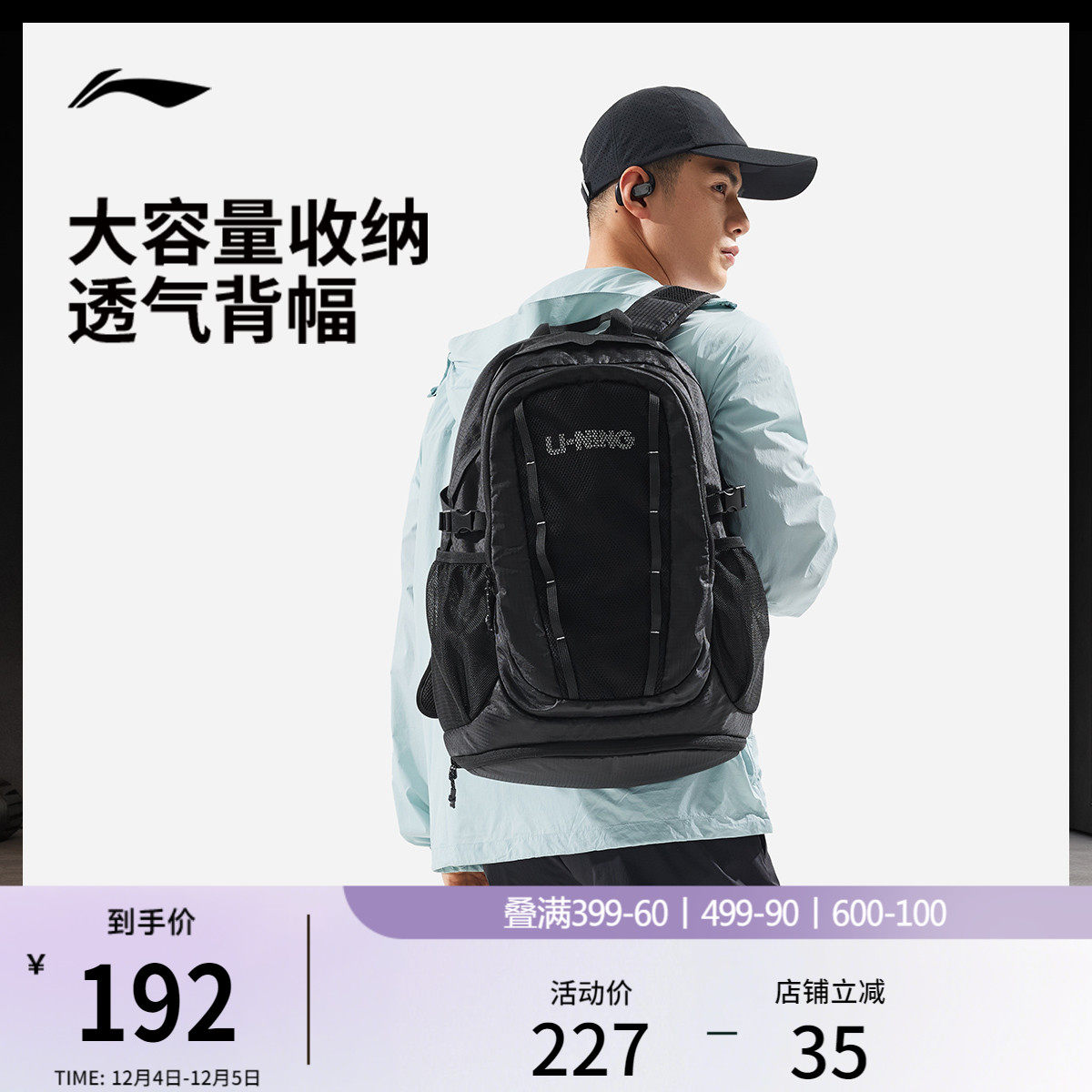 李宁双肩包男女2026新款官方正品大容量健身背包学生书包运动包