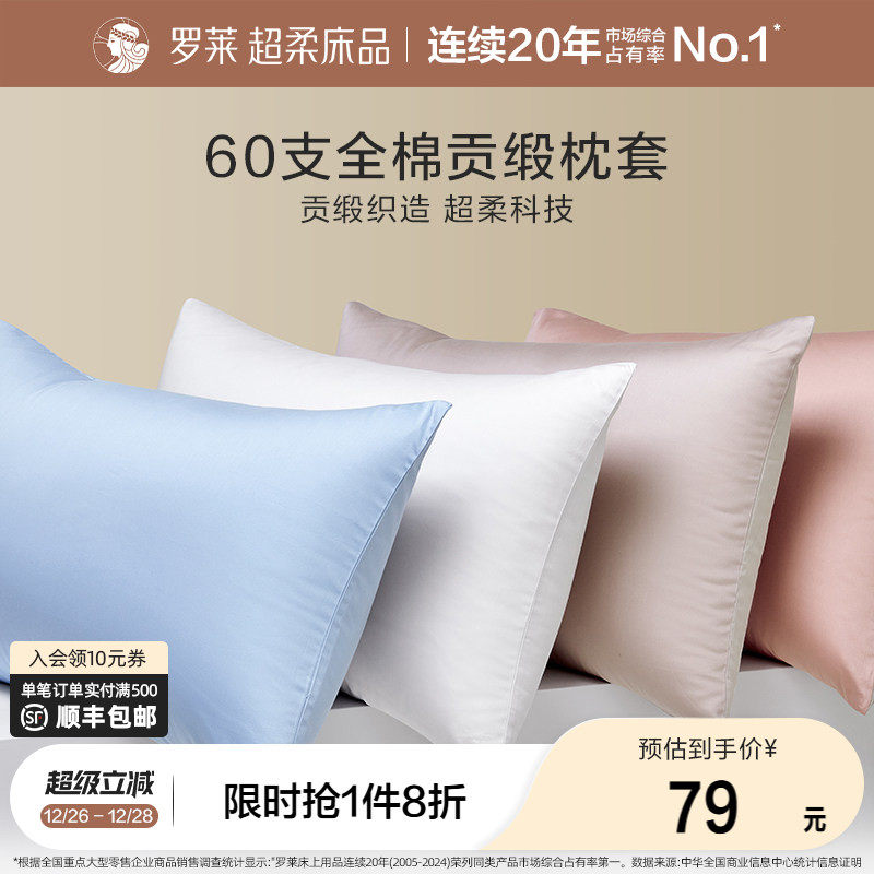 罗莱家纺60支全棉枕套拆单件纯棉全棉学生宿舍单人床单件单卖枕套