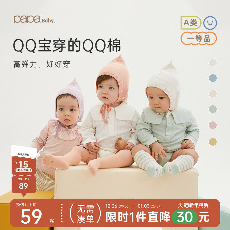 【QQ棉】papa爬爬春季男女宝宝翻领包屁衣婴儿内衣连体衣哈衣