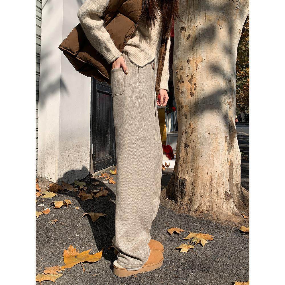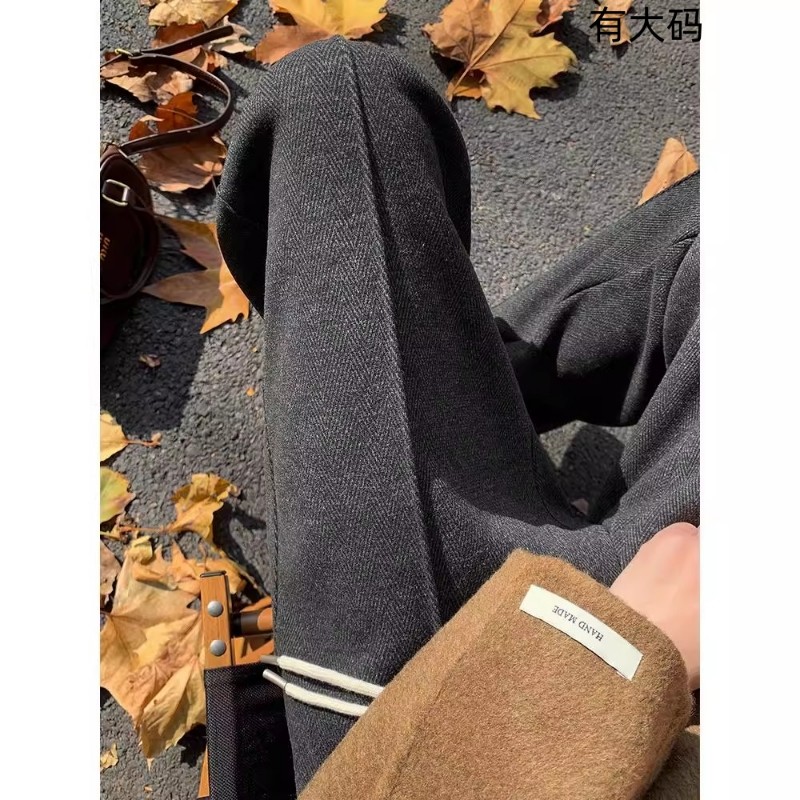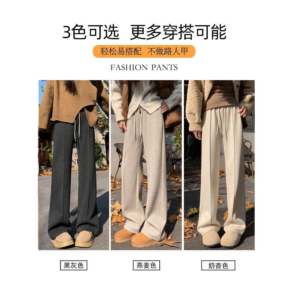 加绒阔腿裤女秋冬季2025高腰休闲毛呢裤直筒裤灰色高级感小个子