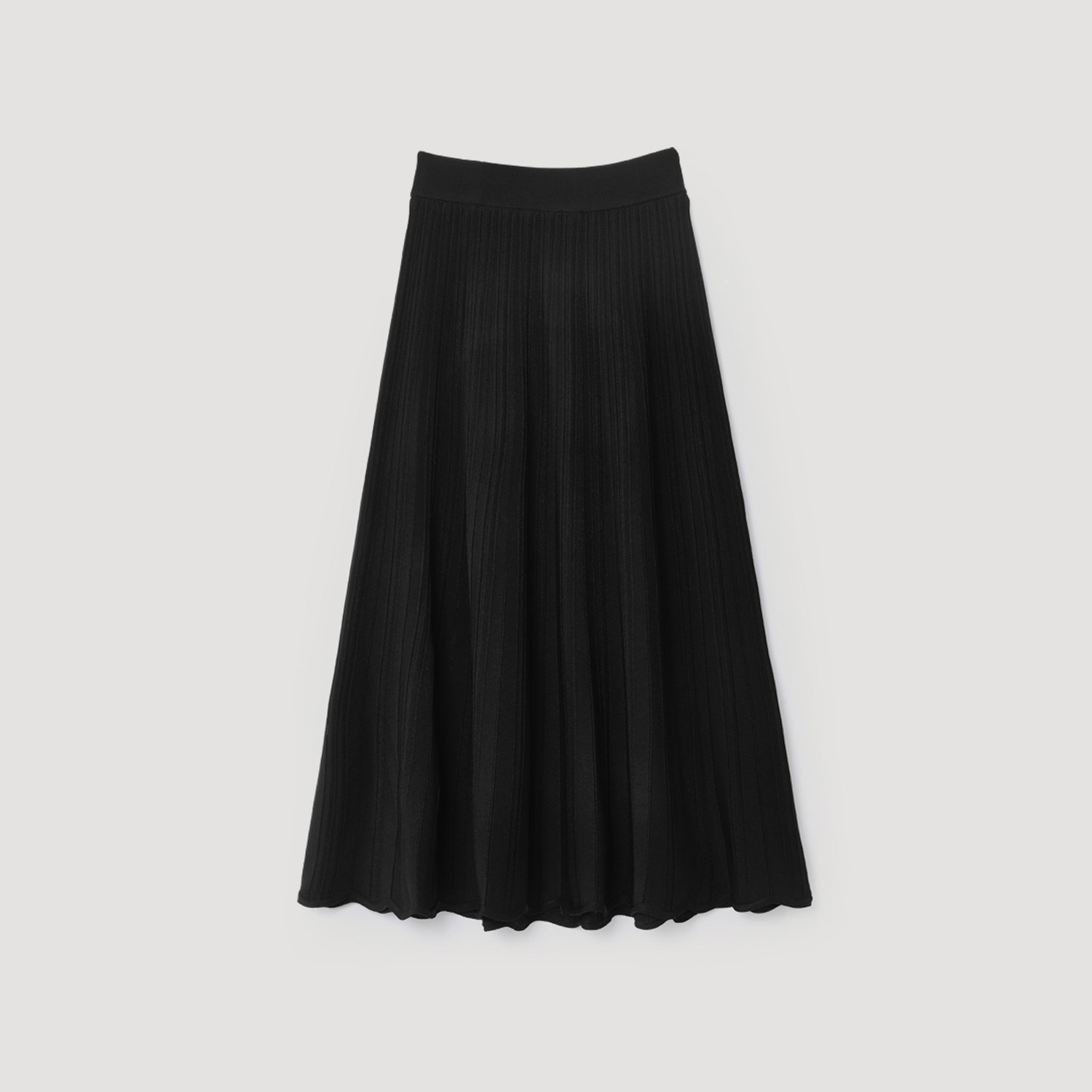 OVV2026春夏新款女装松紧腰波浪边下摆A字针织半身裙
