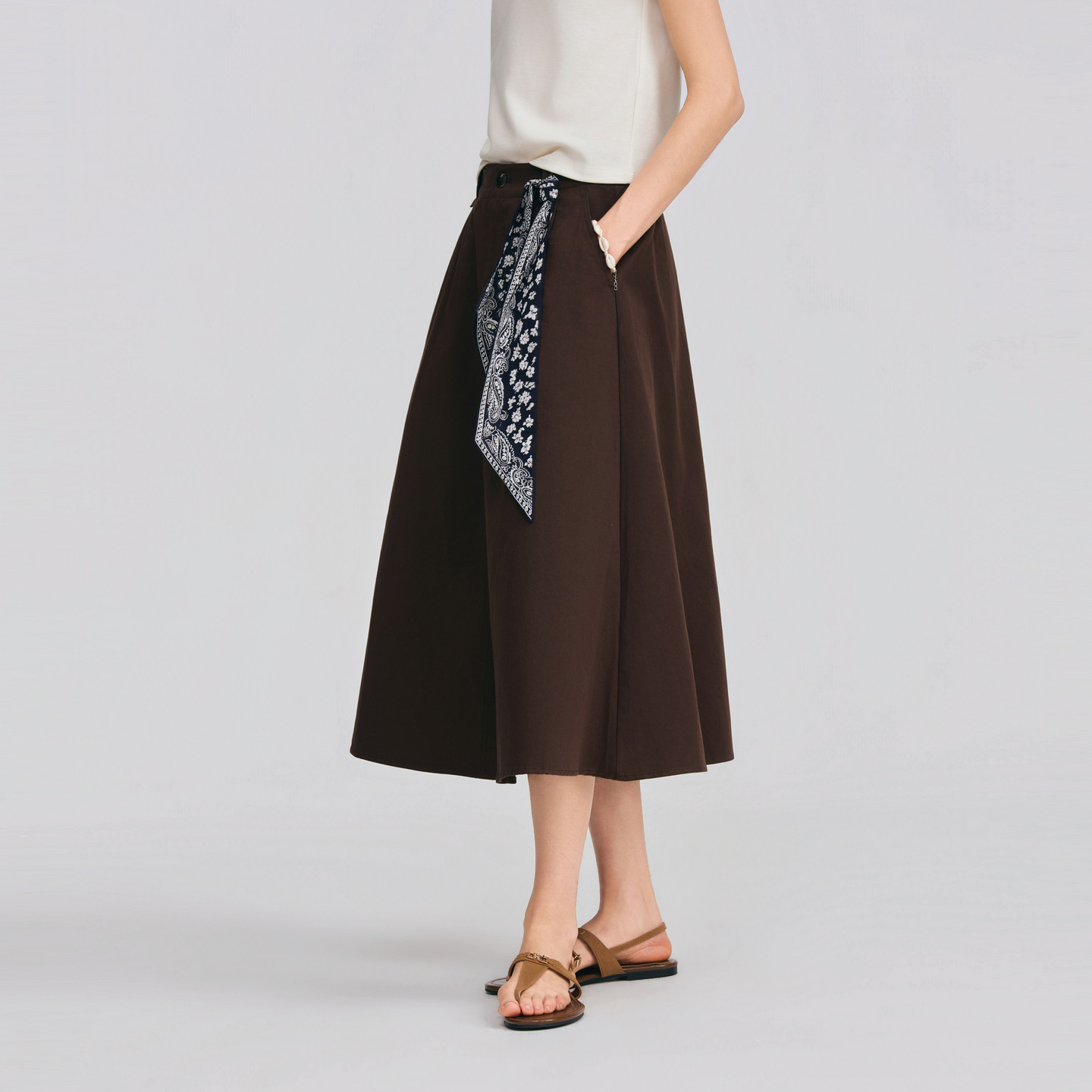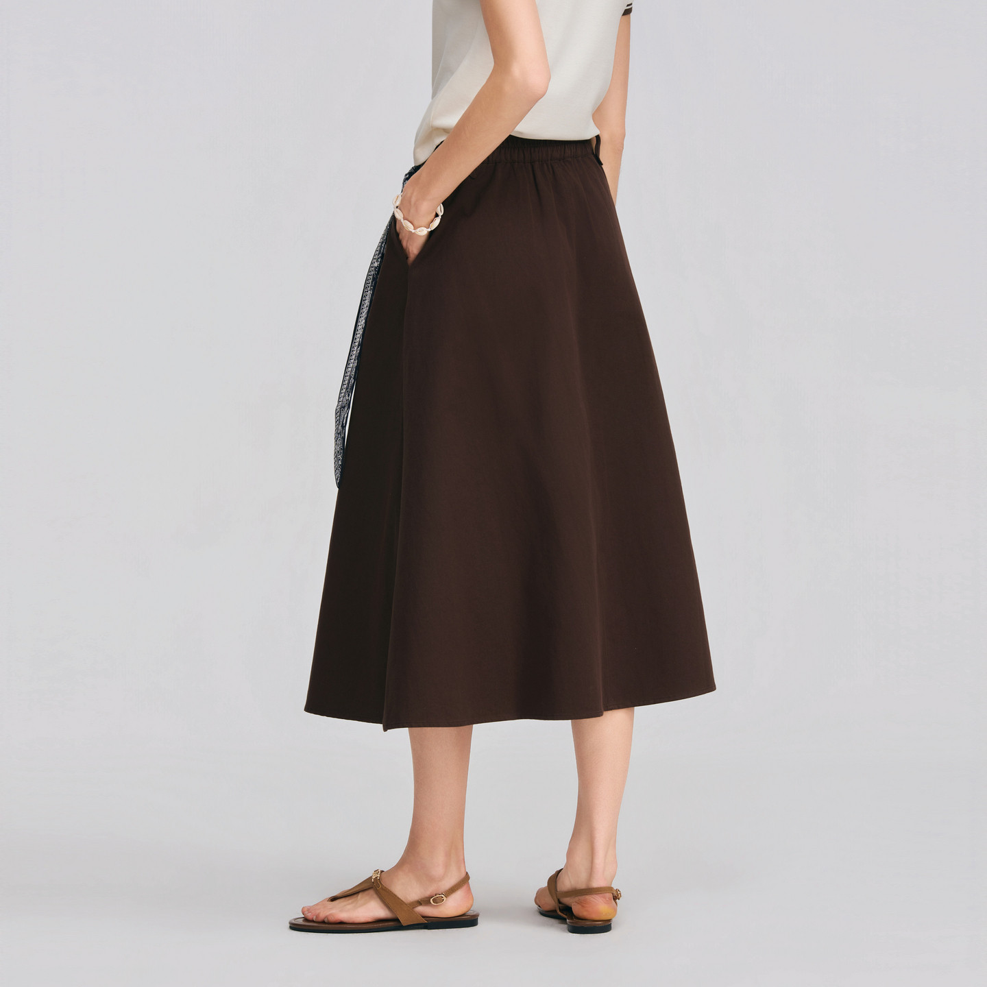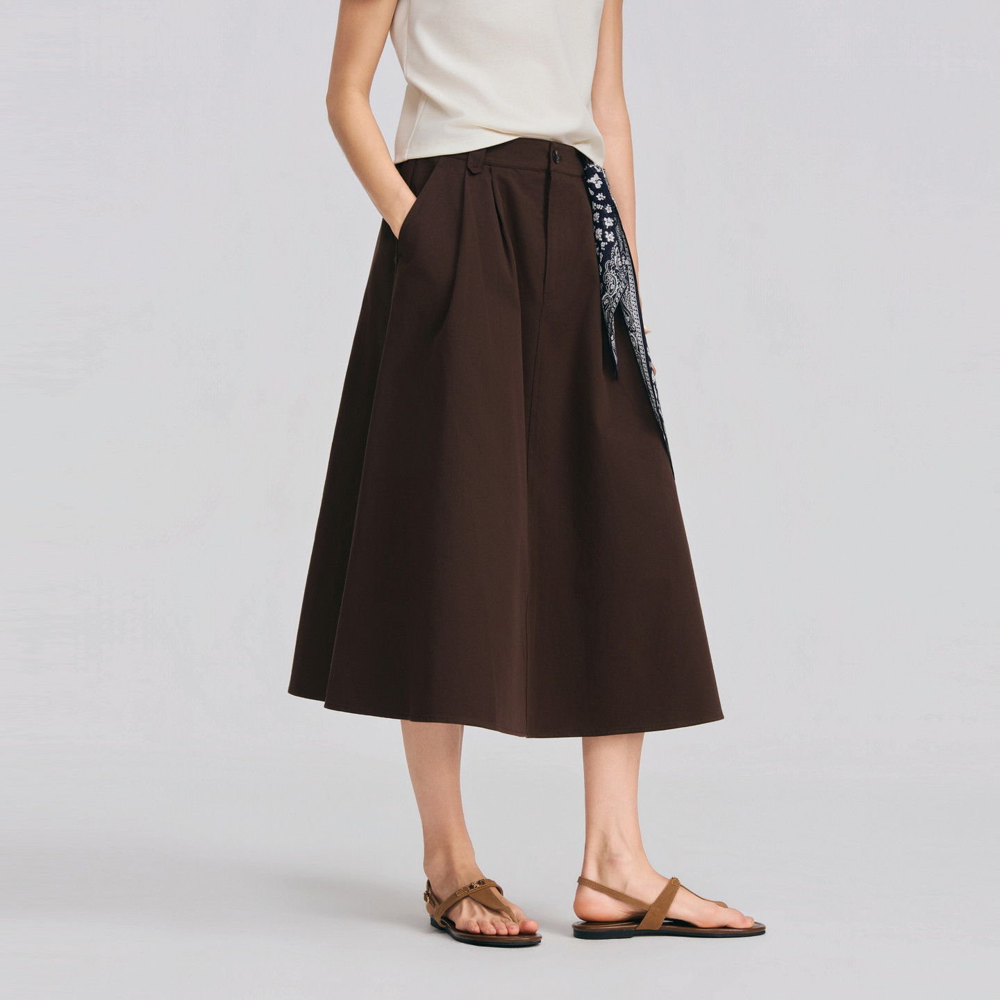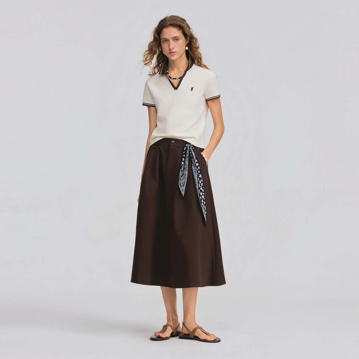 POLOWALK女士半身裙2026春夏新款纯棉复古百搭A字中长款半身裙