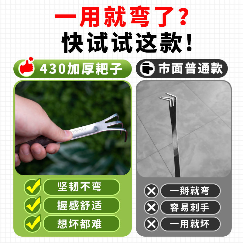 盆景耙子家用不锈钢三爪手耙双头压土刀摘芽手工盆景制作工具松土