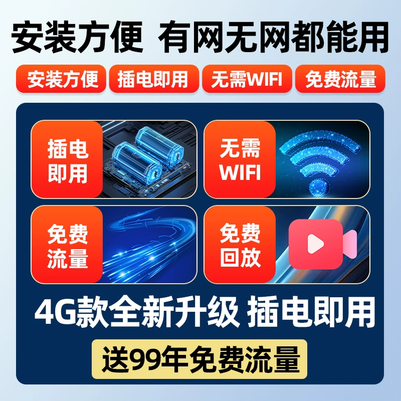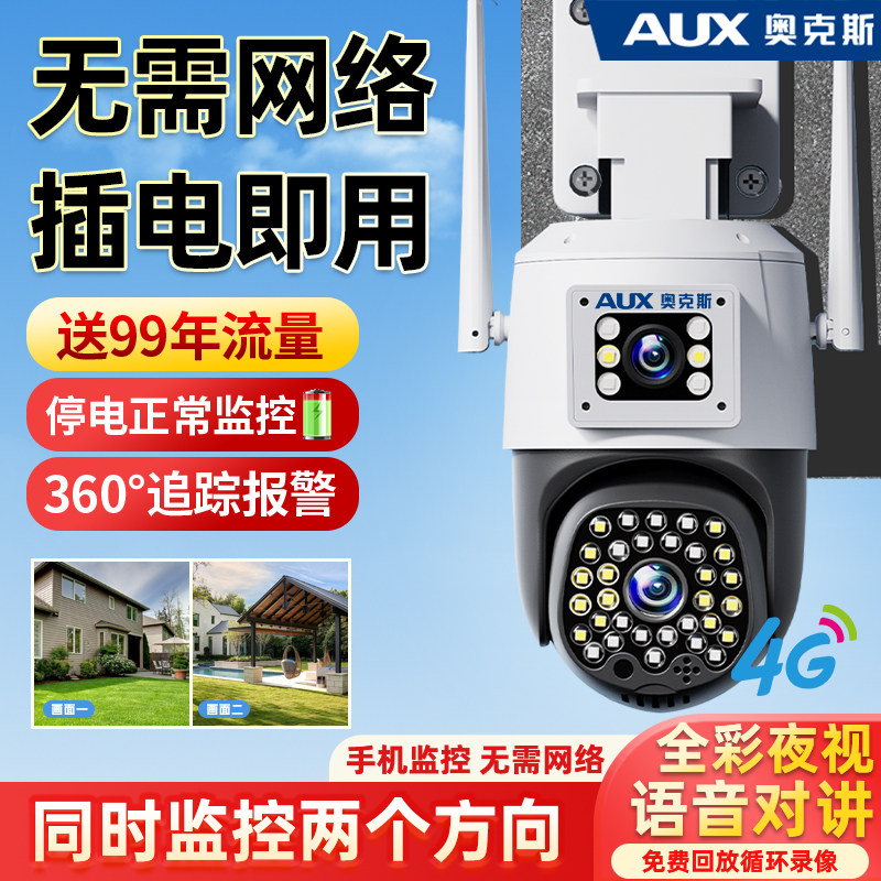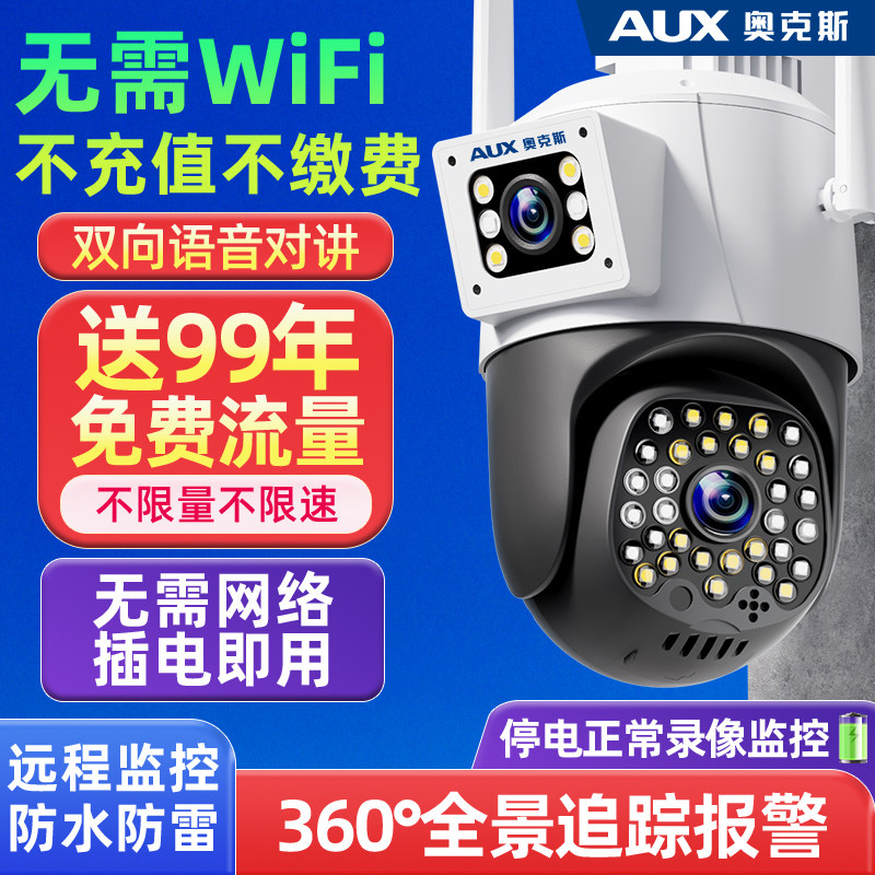 监控摄像头奥克斯无需网络4G终身免流量360度无死角家用手机远程