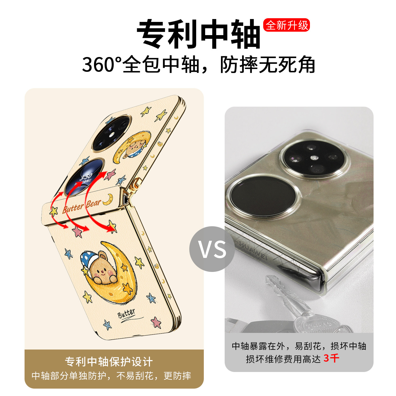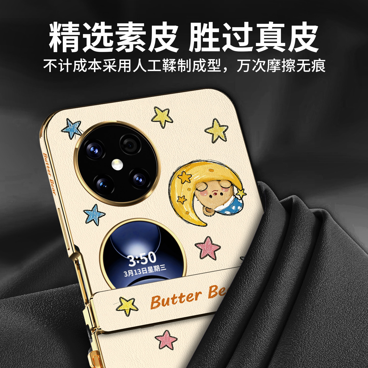 黄油熊适用于华为pocket2手机壳新款pocket 2优享版高级感小折叠屏全包防摔保护套带斜跨挂绳超薄皮纹pk2外壳