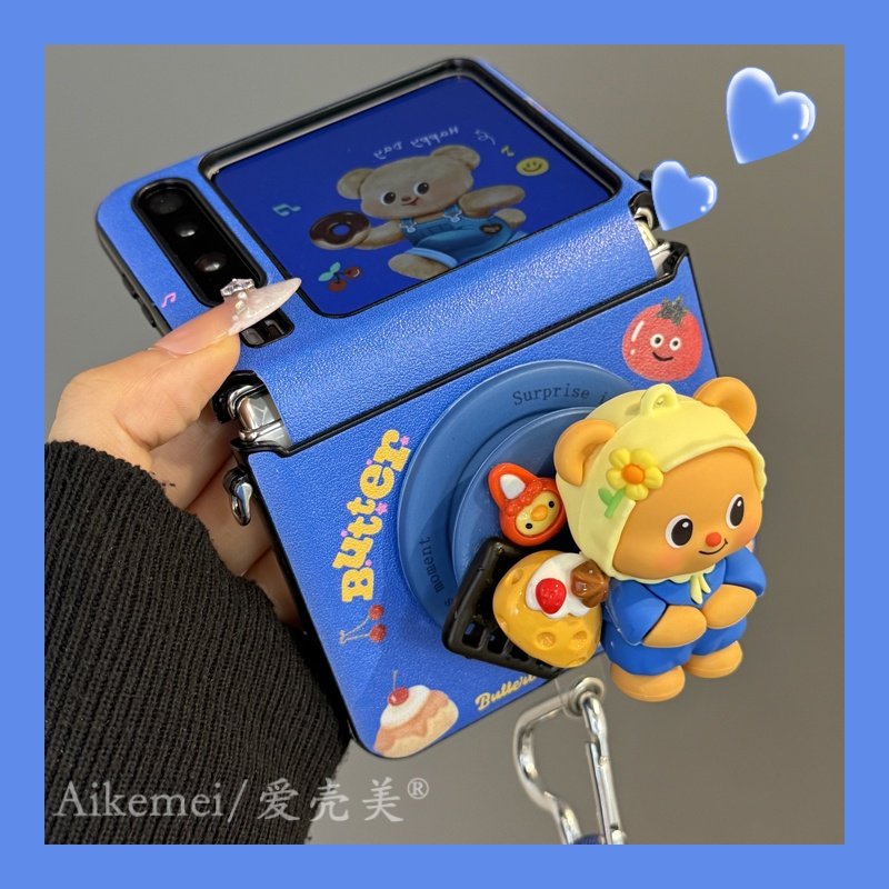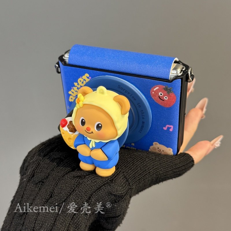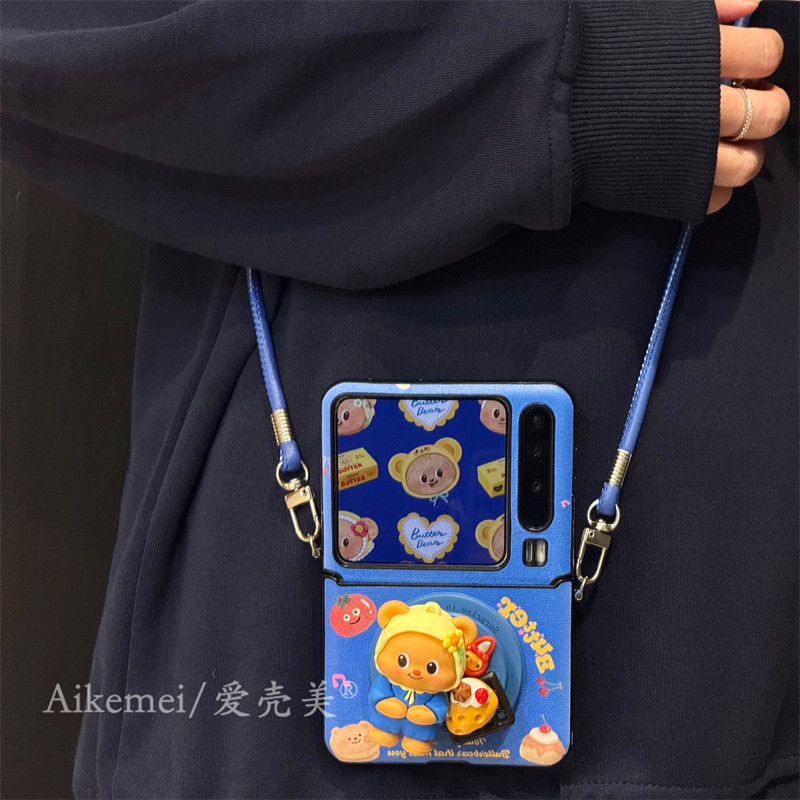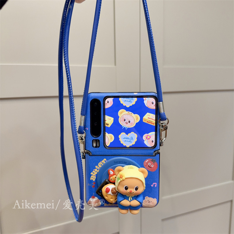 明星同款适用华为purax折叠屏手机壳pocket2黄油小熊磁吸支架小米mixflip2背带式斜跨挂绳三星zflip765护轴女
