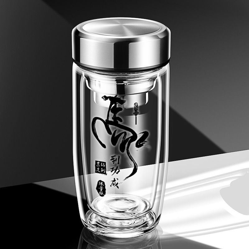 双层玻璃杯耐高温男士办公水杯茶水分离泡茶杯创意刻字防爆鹅蛋杯