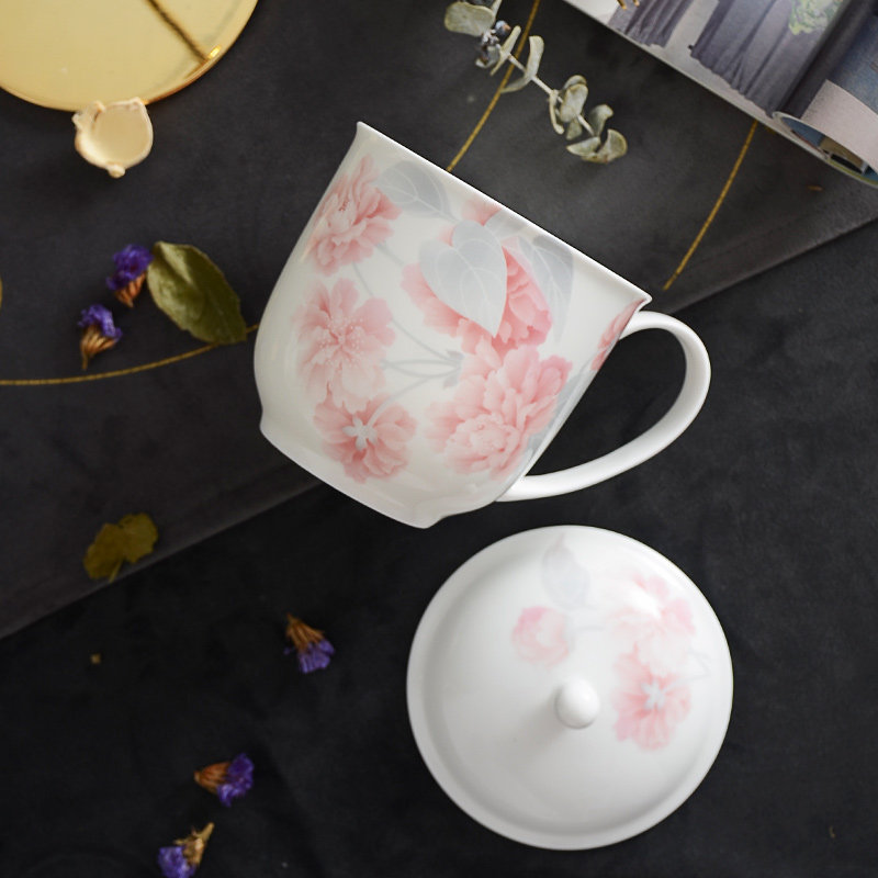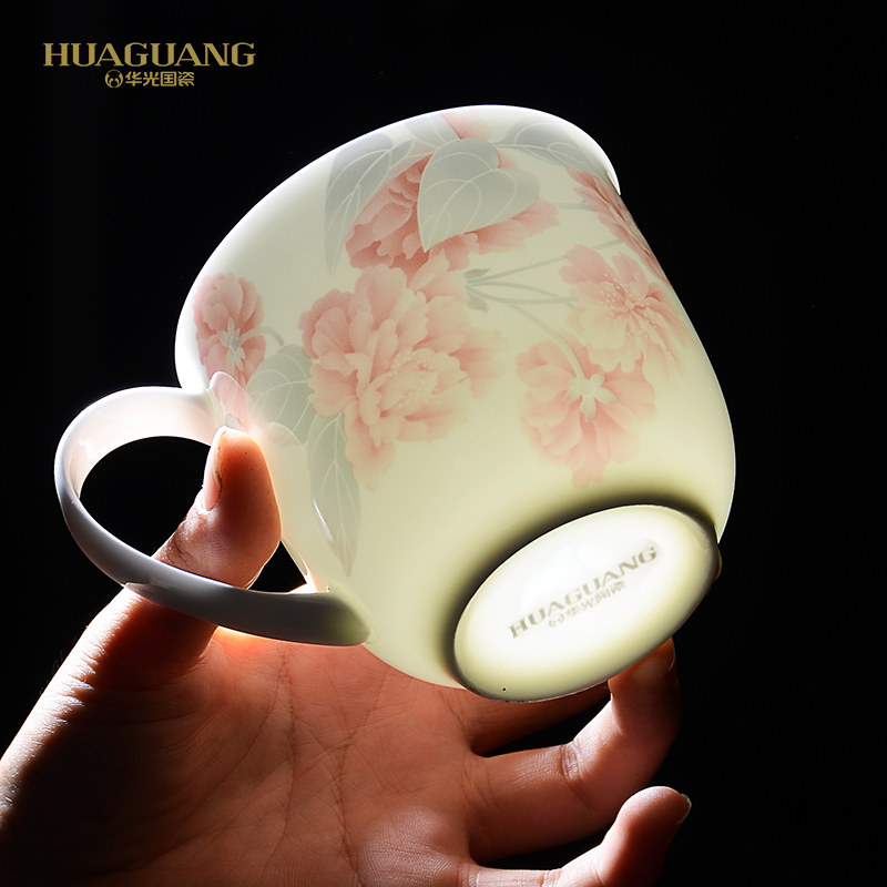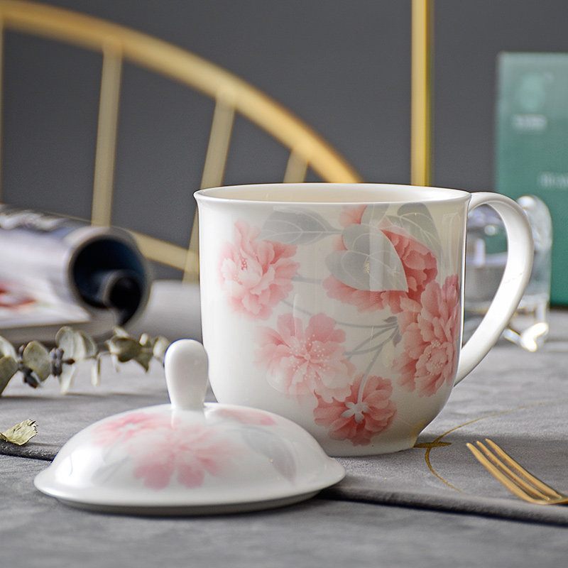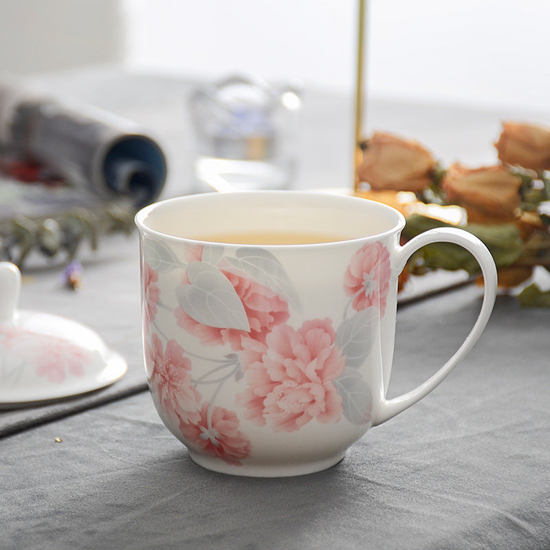 华光国瓷中式骨瓷盖杯水杯茶杯 带盖办公杯会议杯泡茶杯 浪漫晨曦