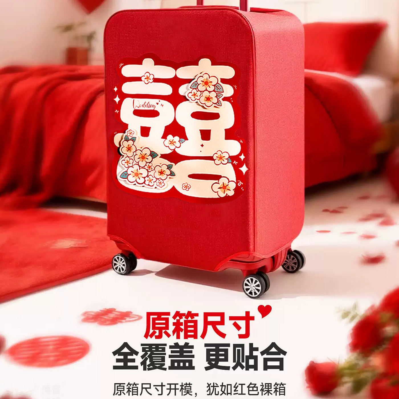 婚庆行李箱罩红色结婚保护套双喜字拉杆箱套女方陪嫁用品皮箱罩子