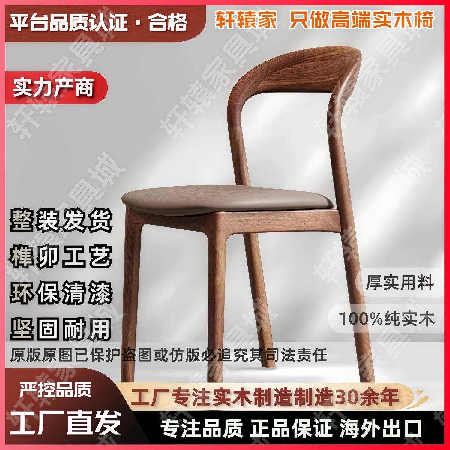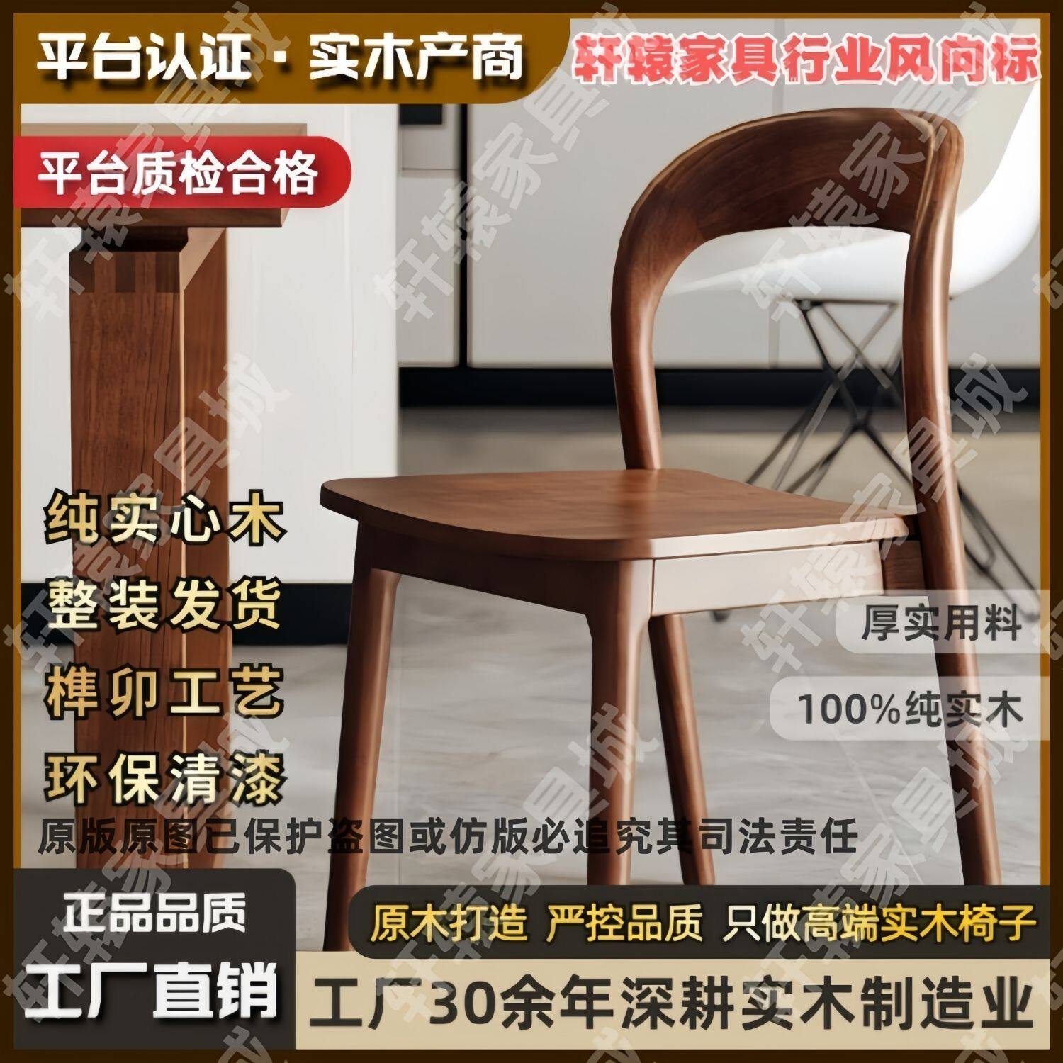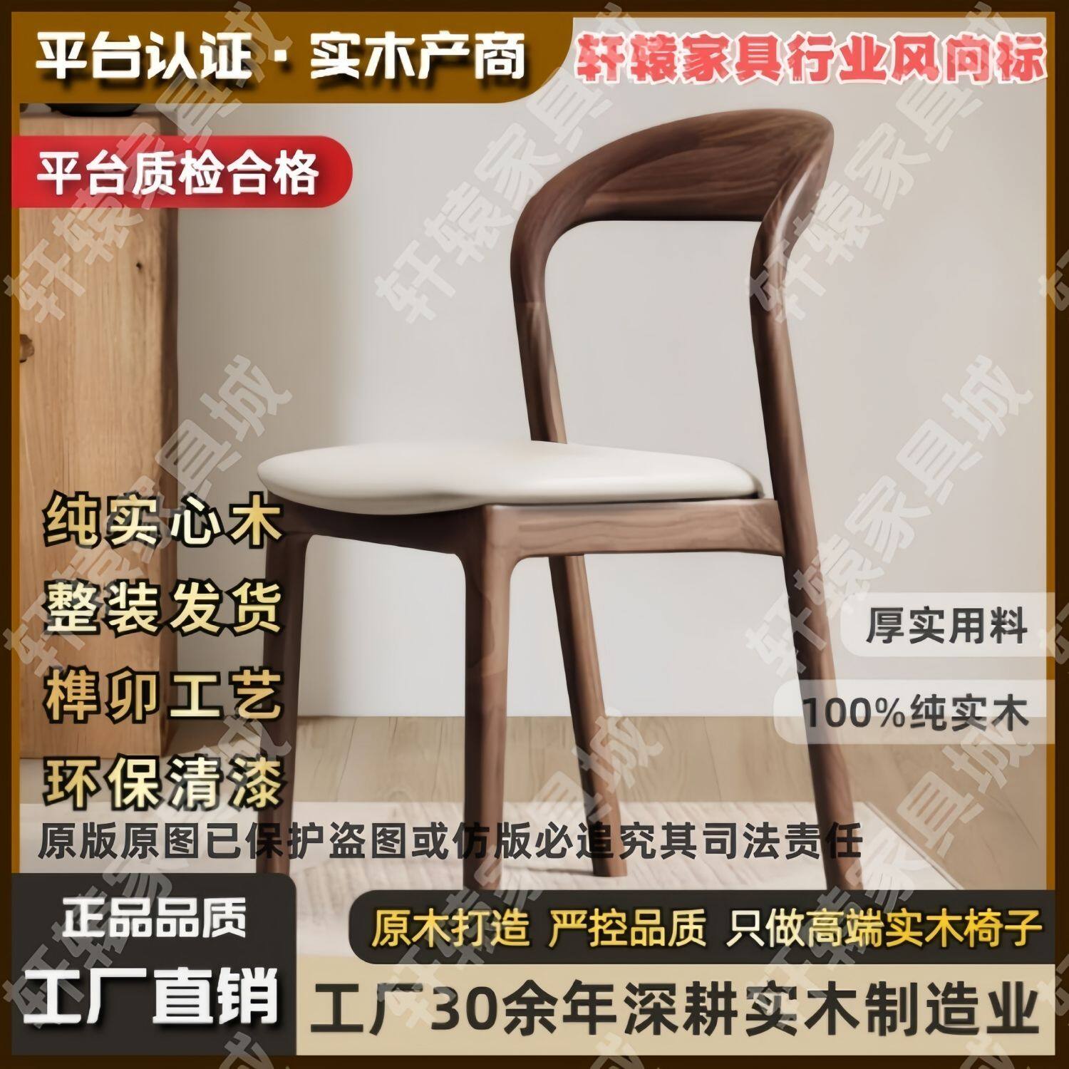 2025意式极简实木餐椅家用中古风靠背椅高级感设计师酒店吃饭书房椅子
