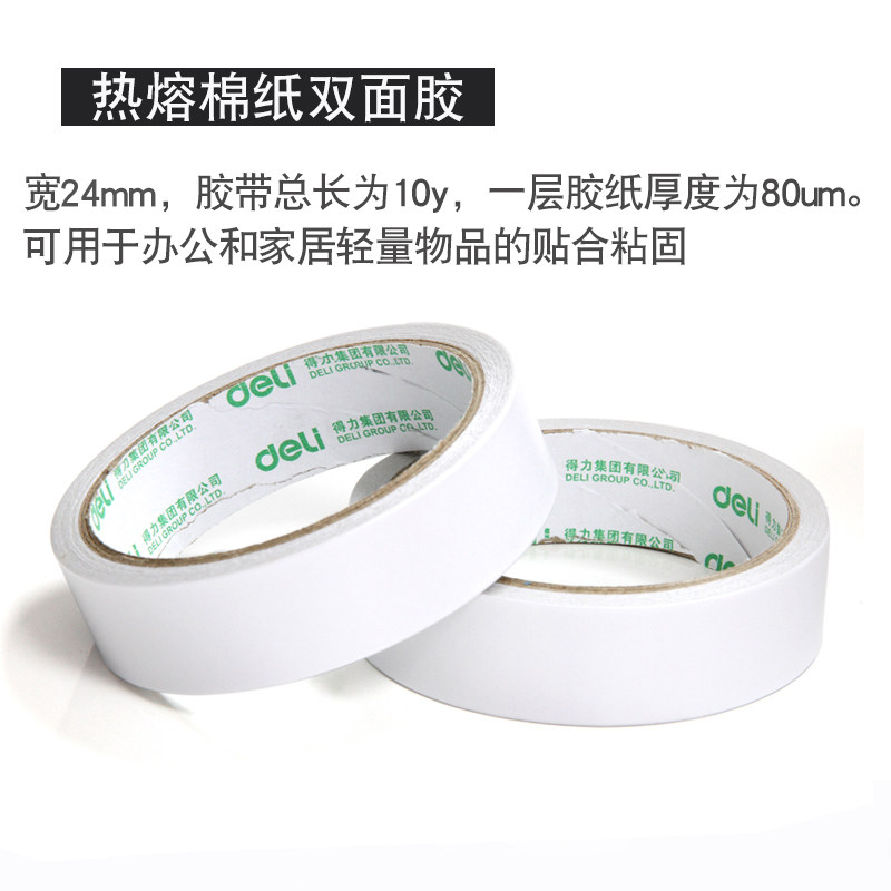 得力30403双面胶带24mm棉纸办公学生胶粘文具用品易撕手工胶带纸