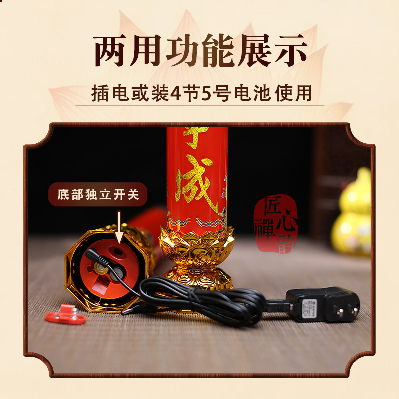 电池款led蜡烛灯蜡烛台供佛摆件电子蜡烛供奉财神灯供灯插电香炉