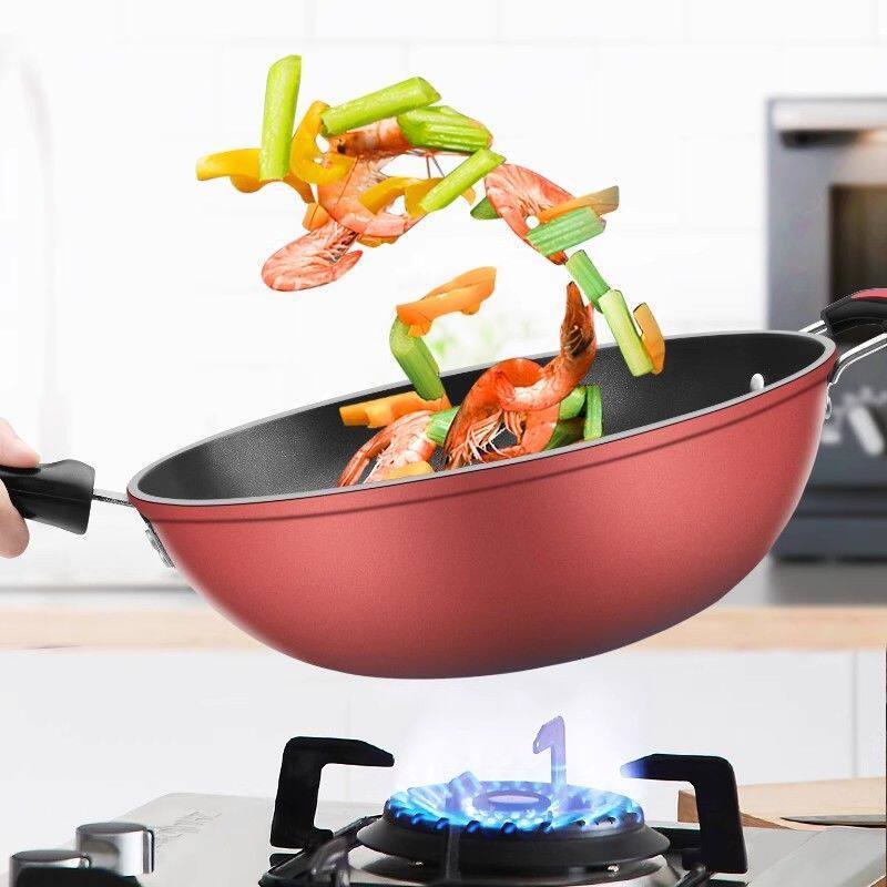 韩国麦饭石不粘锅炒锅家用原装进口电磁炉燃气灶专用不沾锅炒菜锅