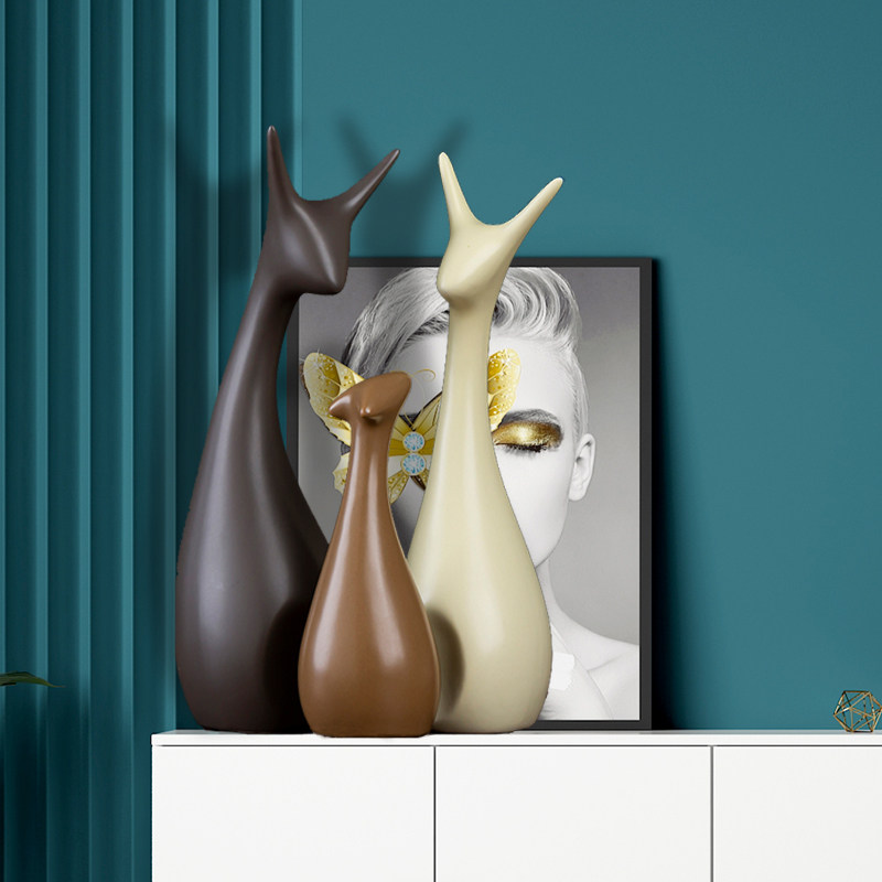 创意招财鹿摆件客厅酒柜玄关家居摆设电视柜福鹿装饰新房乔迁礼物