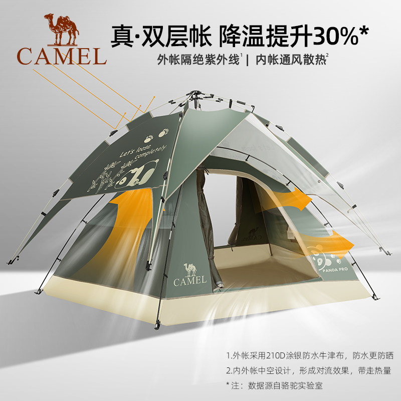 骆驼露营帐篷户外便携式折叠野营公园野餐速开全自动双层帐篷防雨