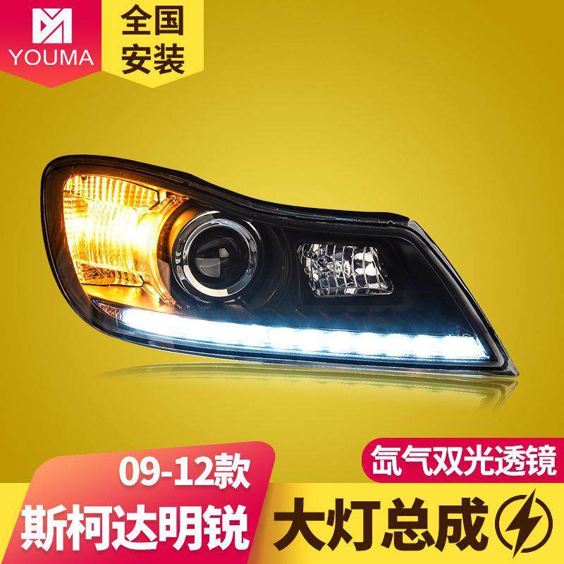专用于10-14款斯柯达明锐大灯总成改装LED泪眼双光透镜氙气大灯