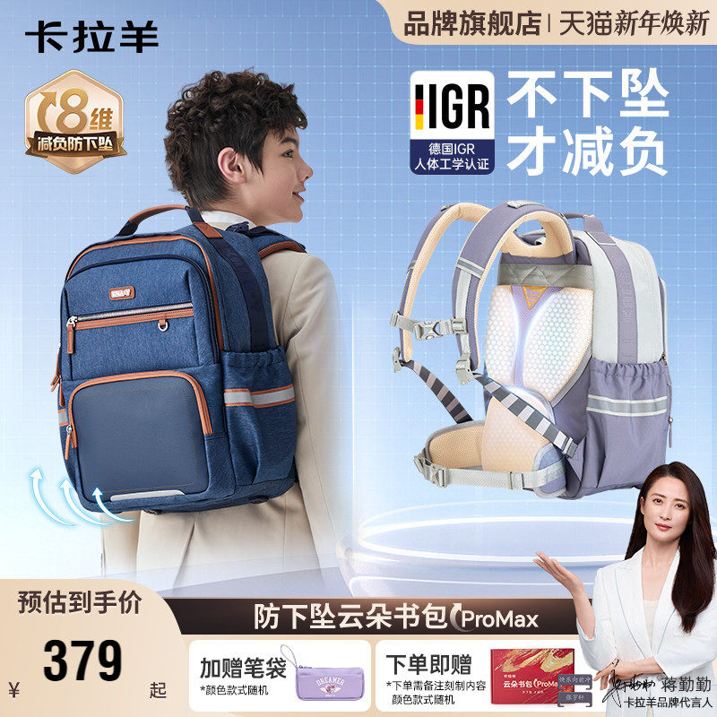 【蒋勤勤代言】卡拉羊24L中学生8维减负防下坠云朵书包CX5136