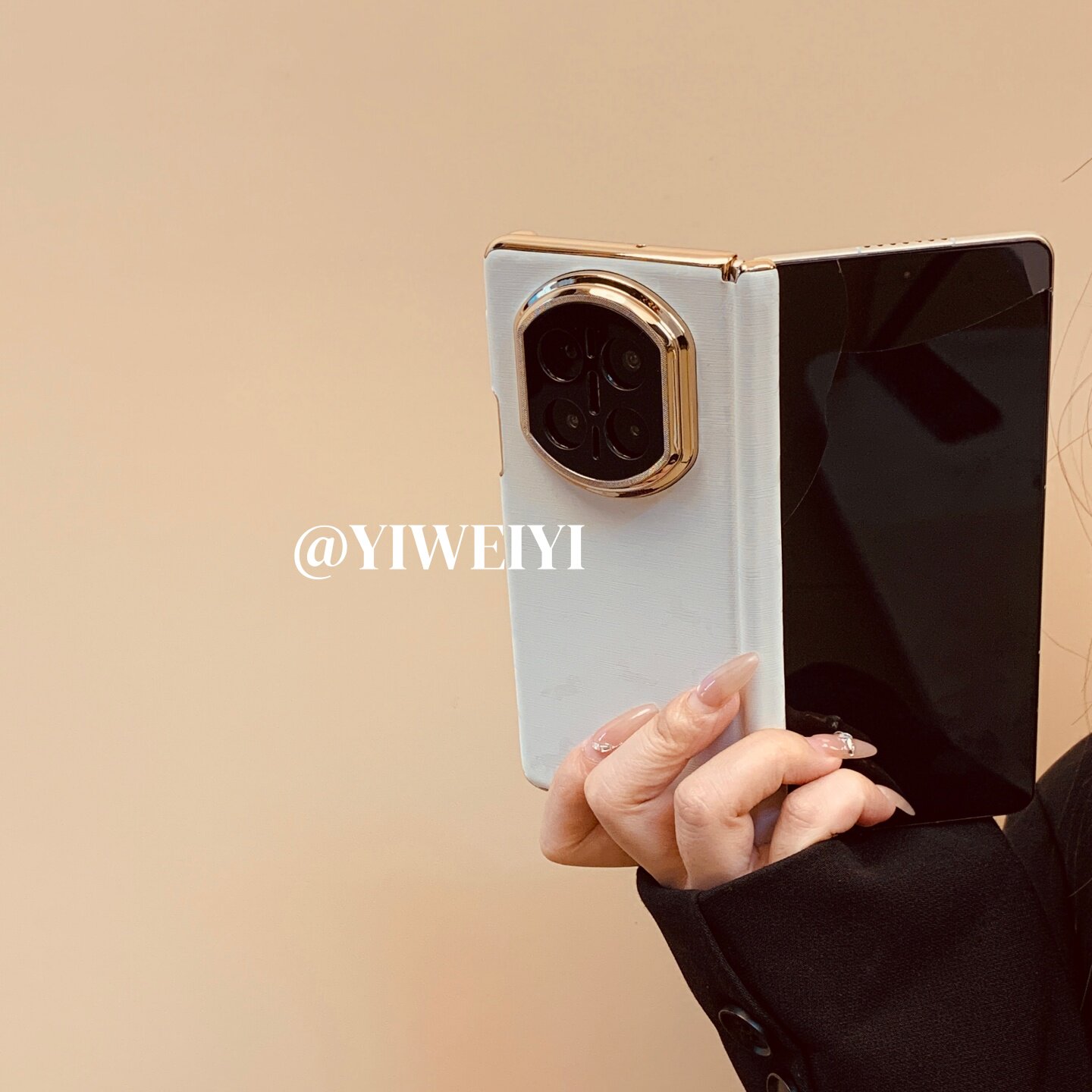 折叠屏手机壳双中轴简约高级感白色万马奔腾