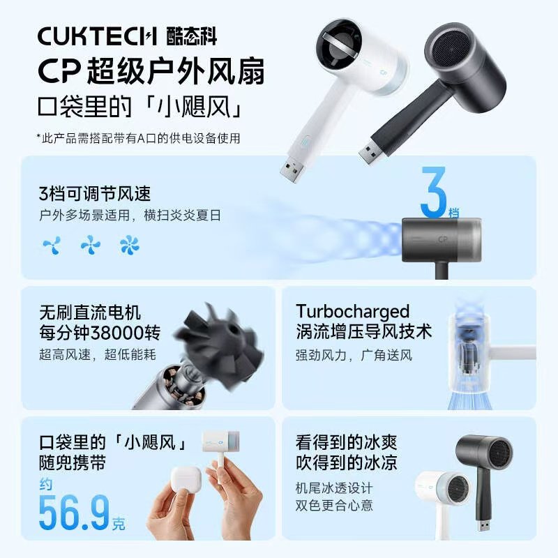 【质保18个月】CUKTECH酷态科CP小风扇手持迷你吹风机风筒USB