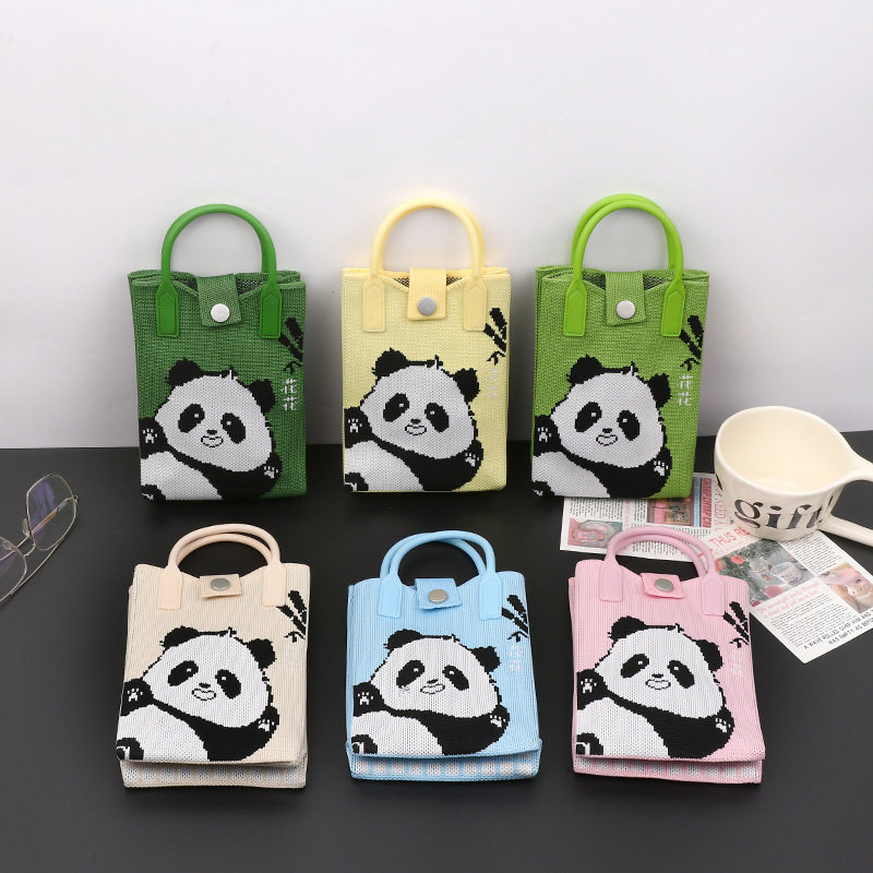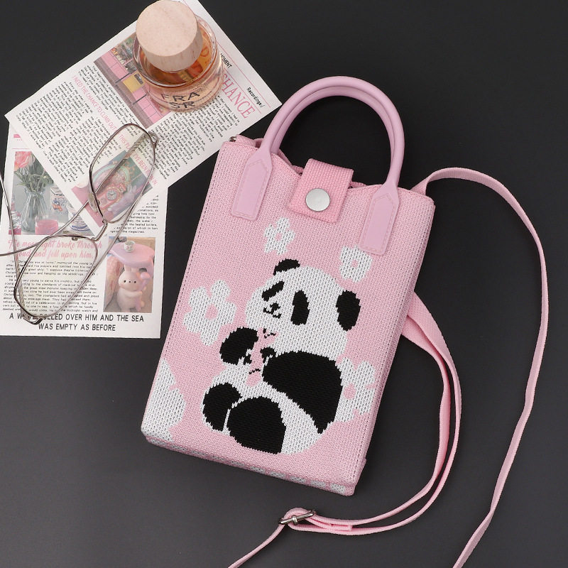 新款斜挎针织百搭手机包熊猫包包迷你零钱小包便携可爱单肩包外出