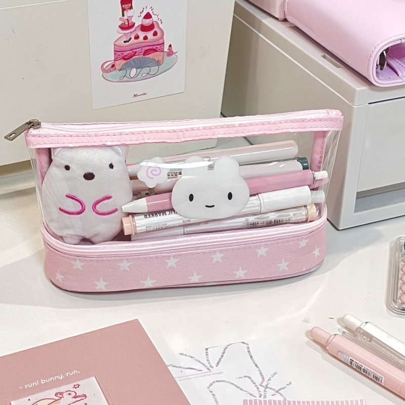 原创鱼板兔兔立式笔袋学生ins风少女心高颜值PVC透明文具盒铅笔袋