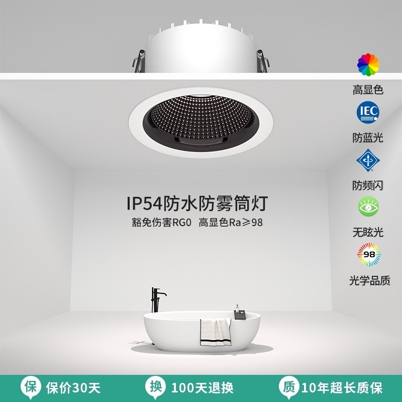 开孔75mm浴室防眩防水筒灯厨房卫生间防潮防雾淋浴房嵌入式天花灯