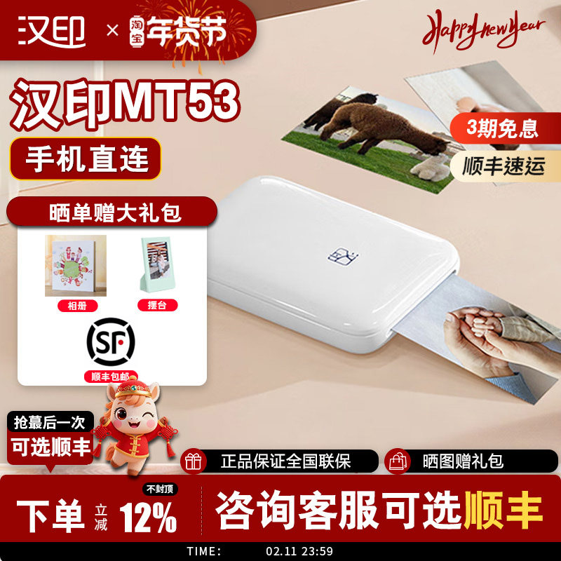 【顺丰包邮】汉印照片打印机 MT53家用小型手机照片相片洗照片 彩色便携式迷你冲印机 口袋便携无线三寸照片