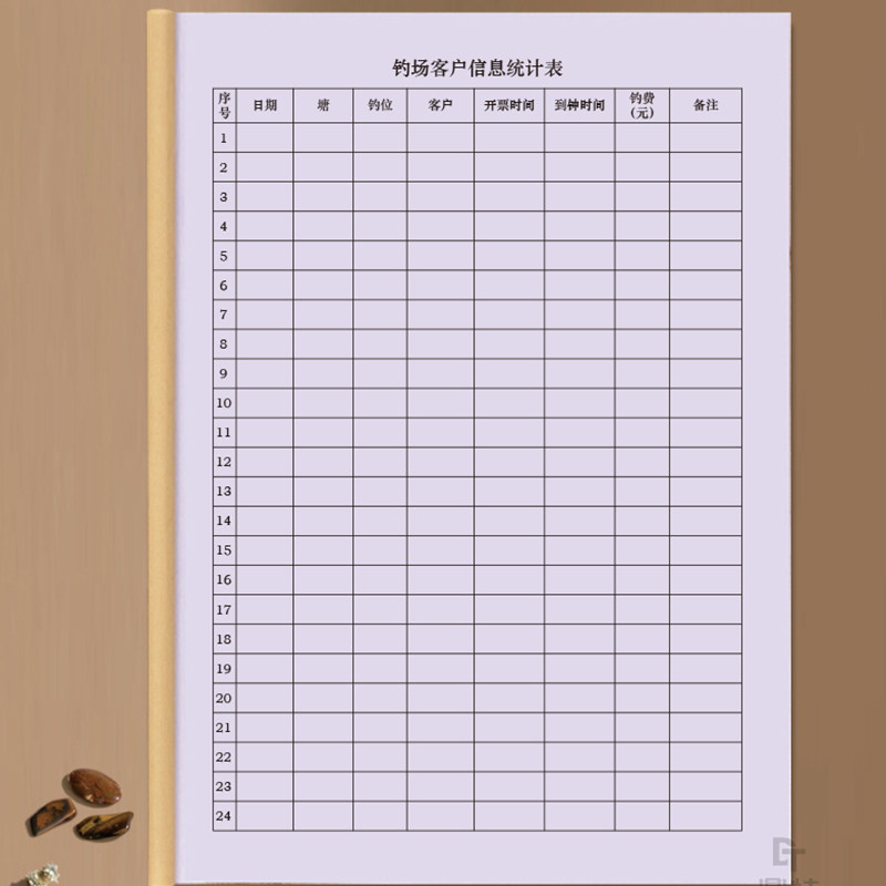 钓场客户信息统计表钓场收费统计表鱼塘登记本记账本定制钓鱼场入场券回鱼票专用收据钓场记账本客户钓鱼罗氏