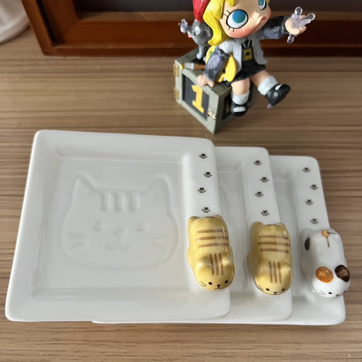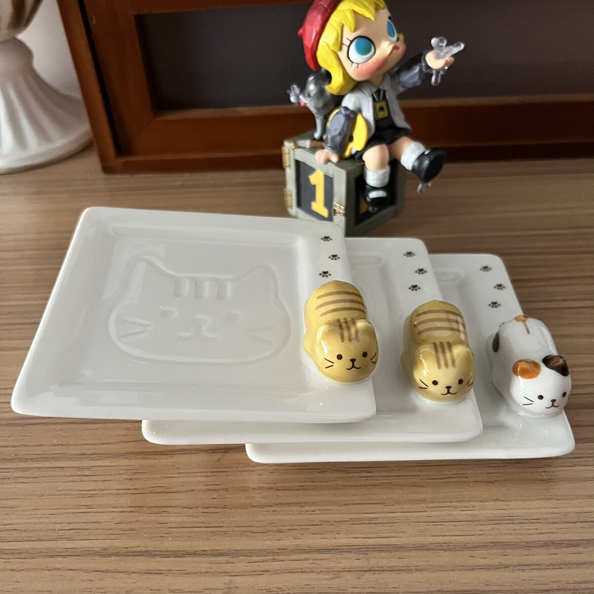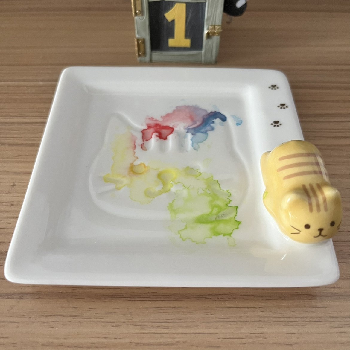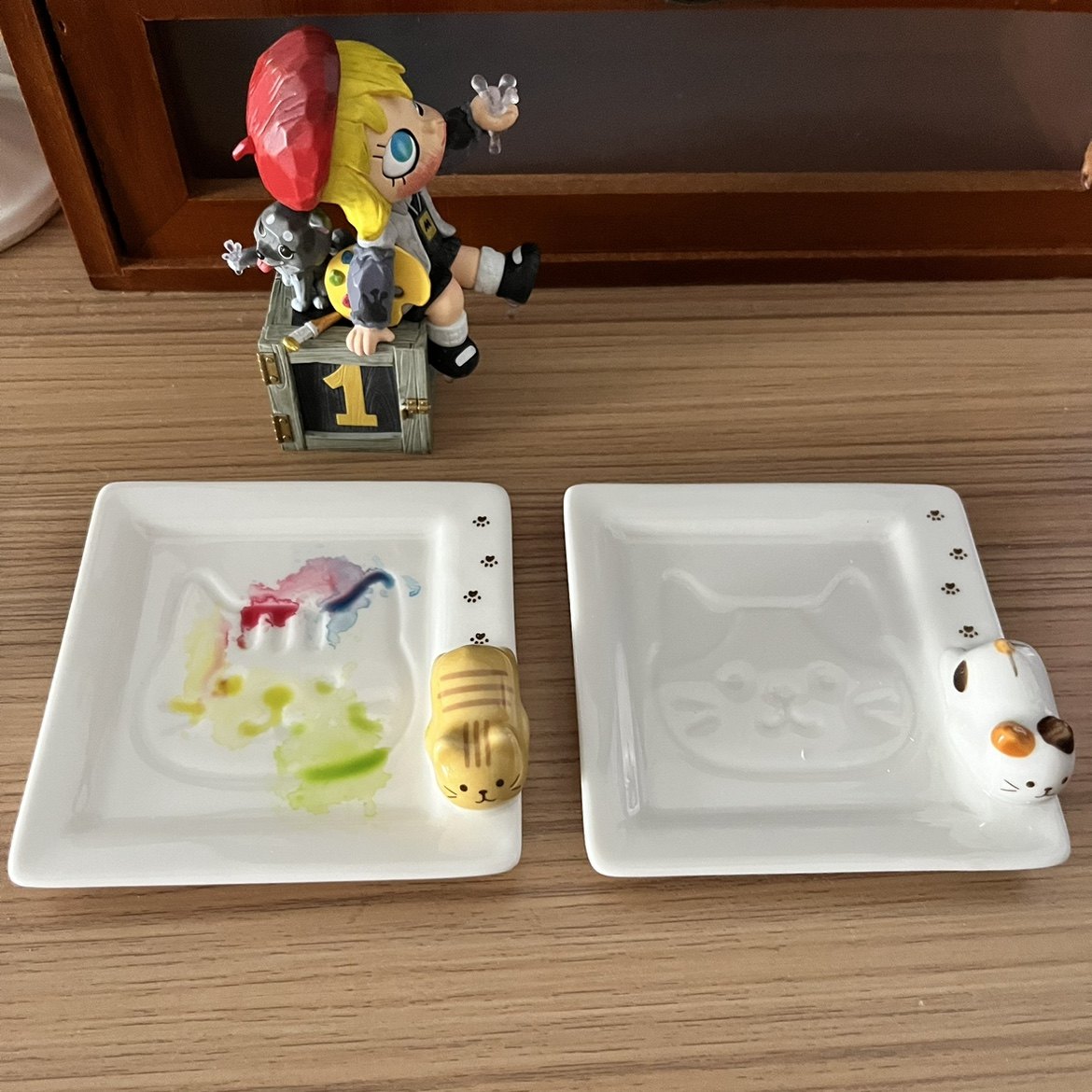日式猫咪猫盘子陶瓷调色盘水彩方形盘国画可爱美甲口红粉底液化妆