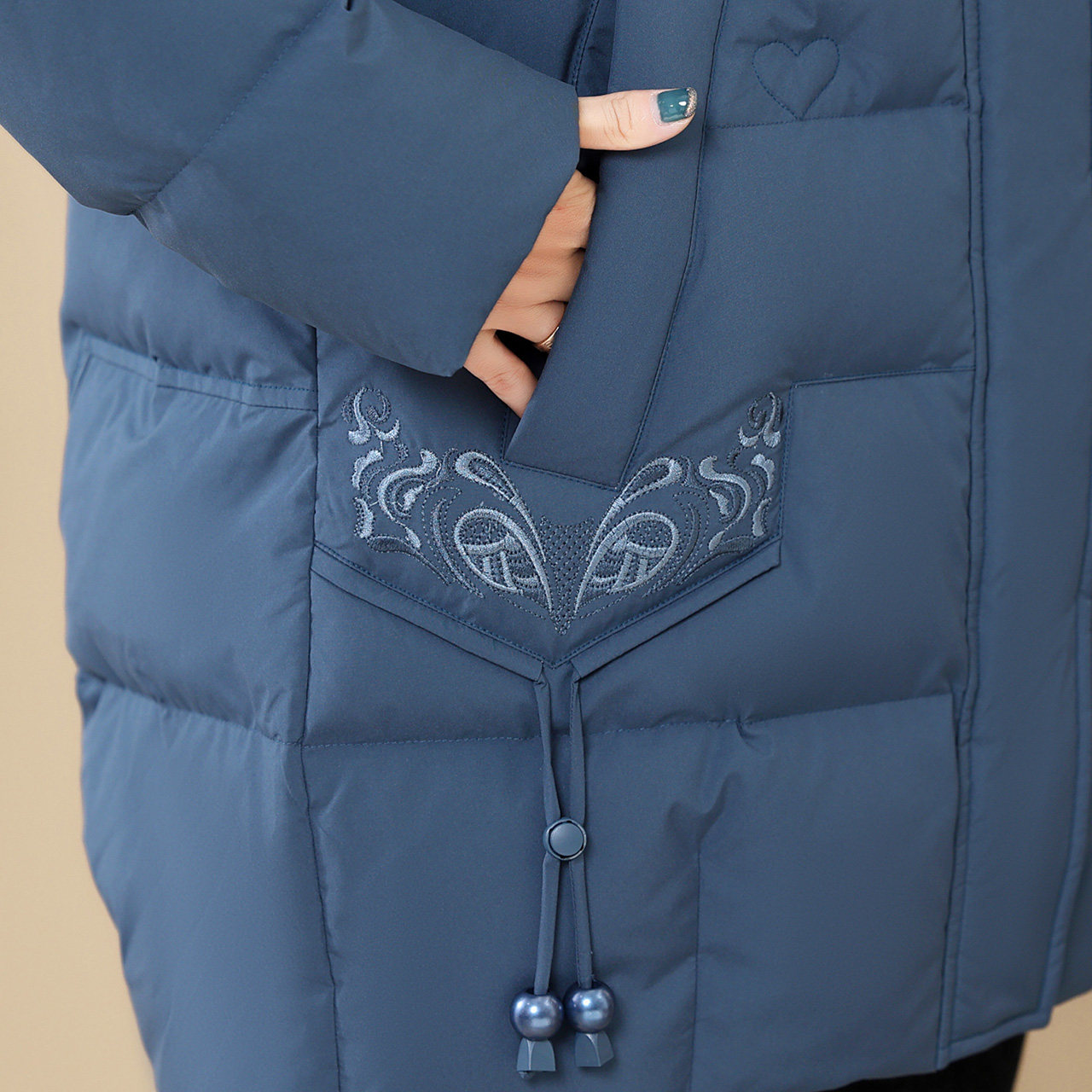 鸭鸭中戏pro羽绒服女冬季反季中长款羽绒服过膝加厚95绒波兰鸭绒J