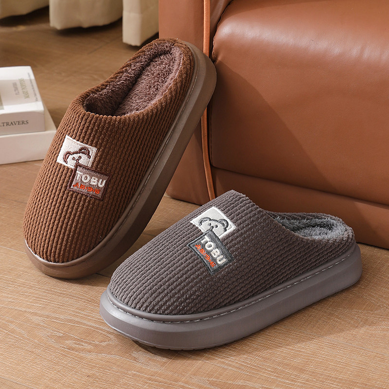 朴西棉拖鞋女士秋冬季厚底简约保暖室内居家用软底防滑情侣棉拖男
